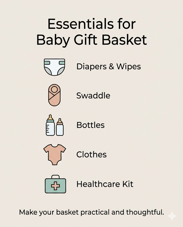 Every great baby gift basket starts with practical essentials that parents actually need.