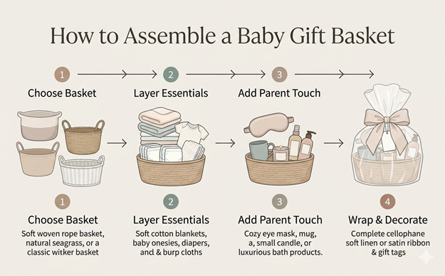 3. Best practices for assembling a baby gift basket?