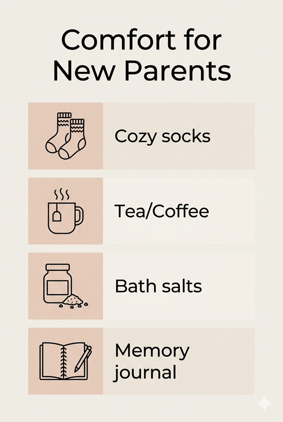 New parents often get overlooked. Including a small treat for them can make your gift basket feel extra thoughtful: