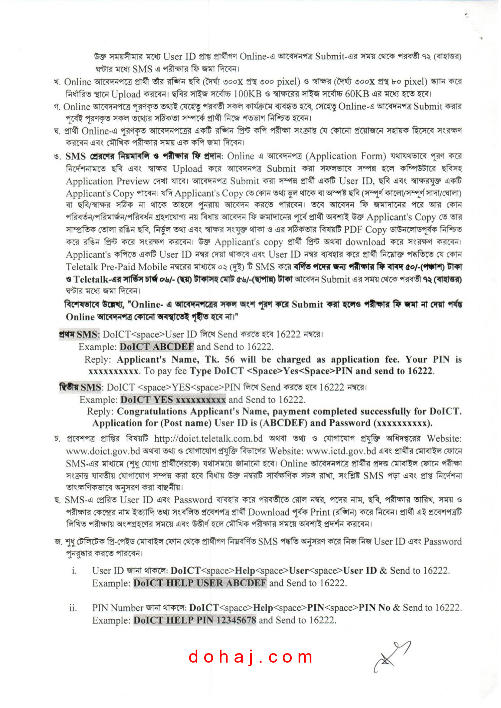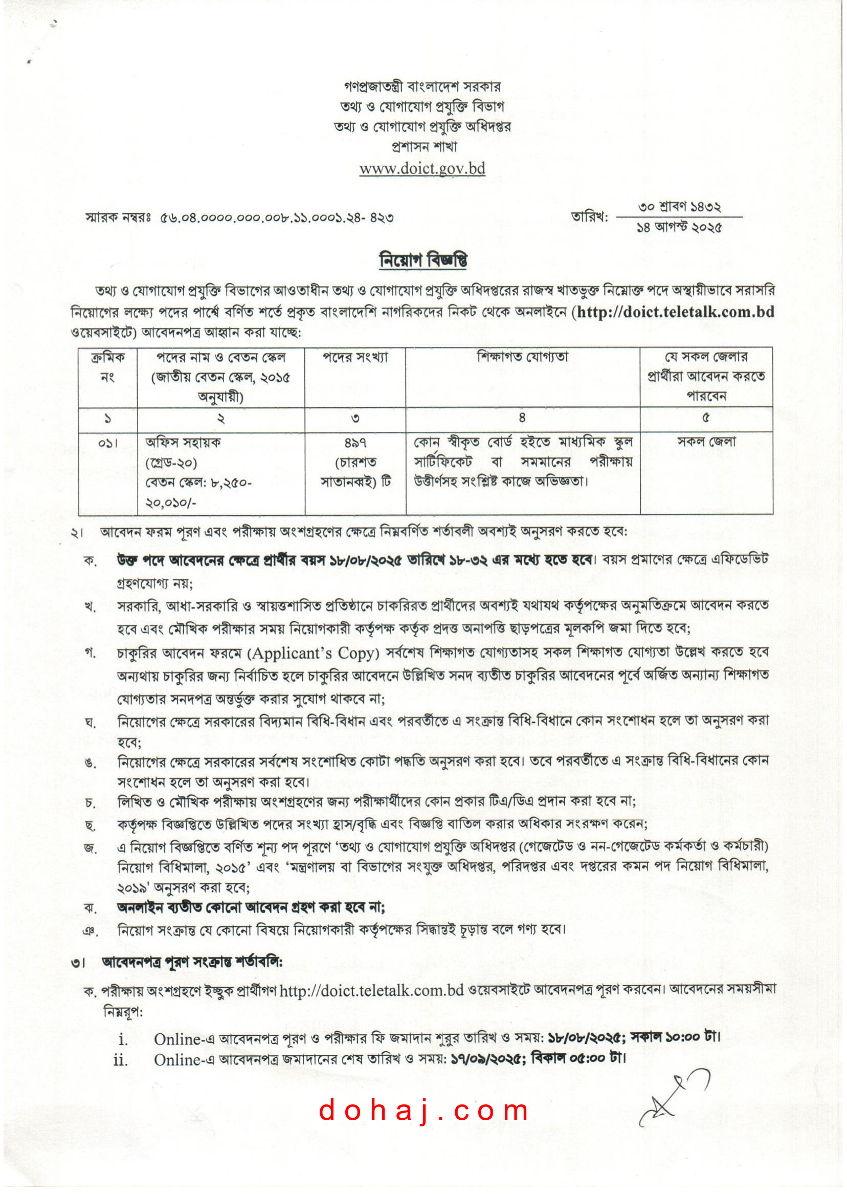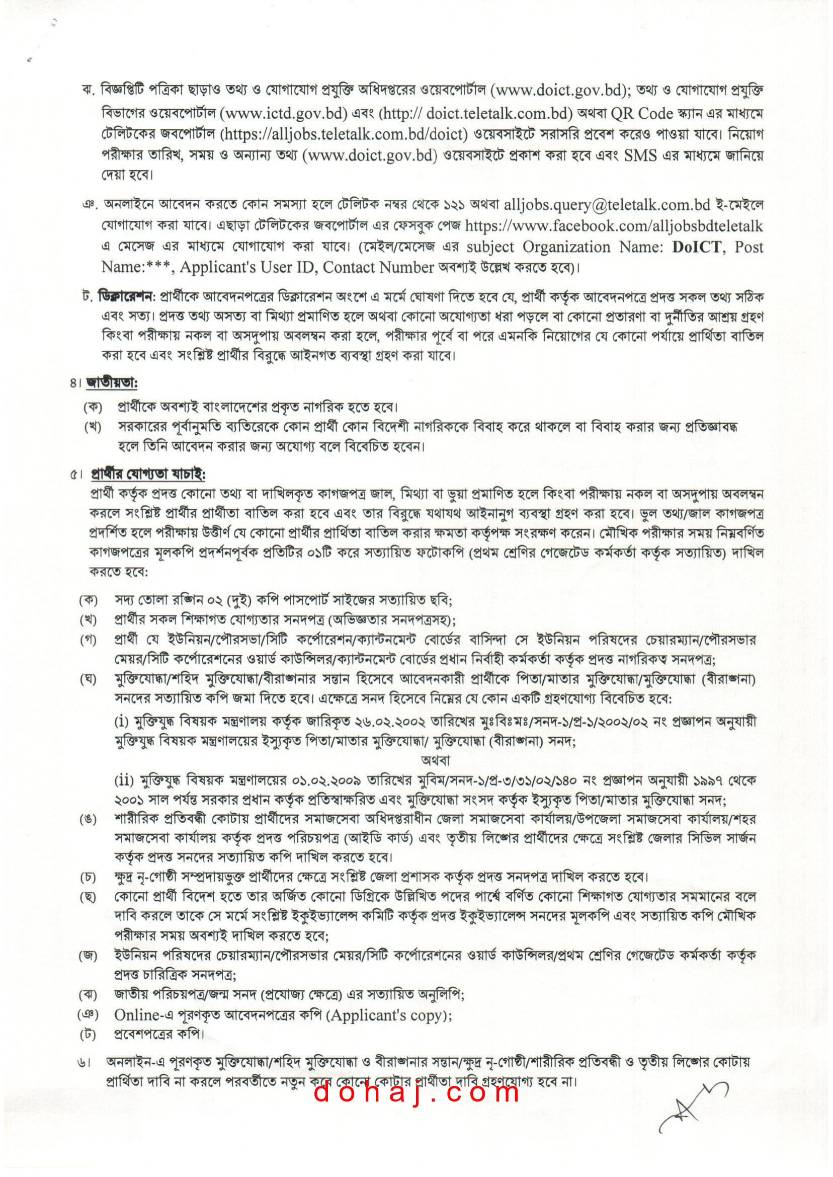আবেদন প্রক্রিয়া: আগ্রহী প্রার্থীদের http://doict.teletalk.com.bd এই ওয়েবসাইটের মাধ্যমে আবেদন করতে হবে।