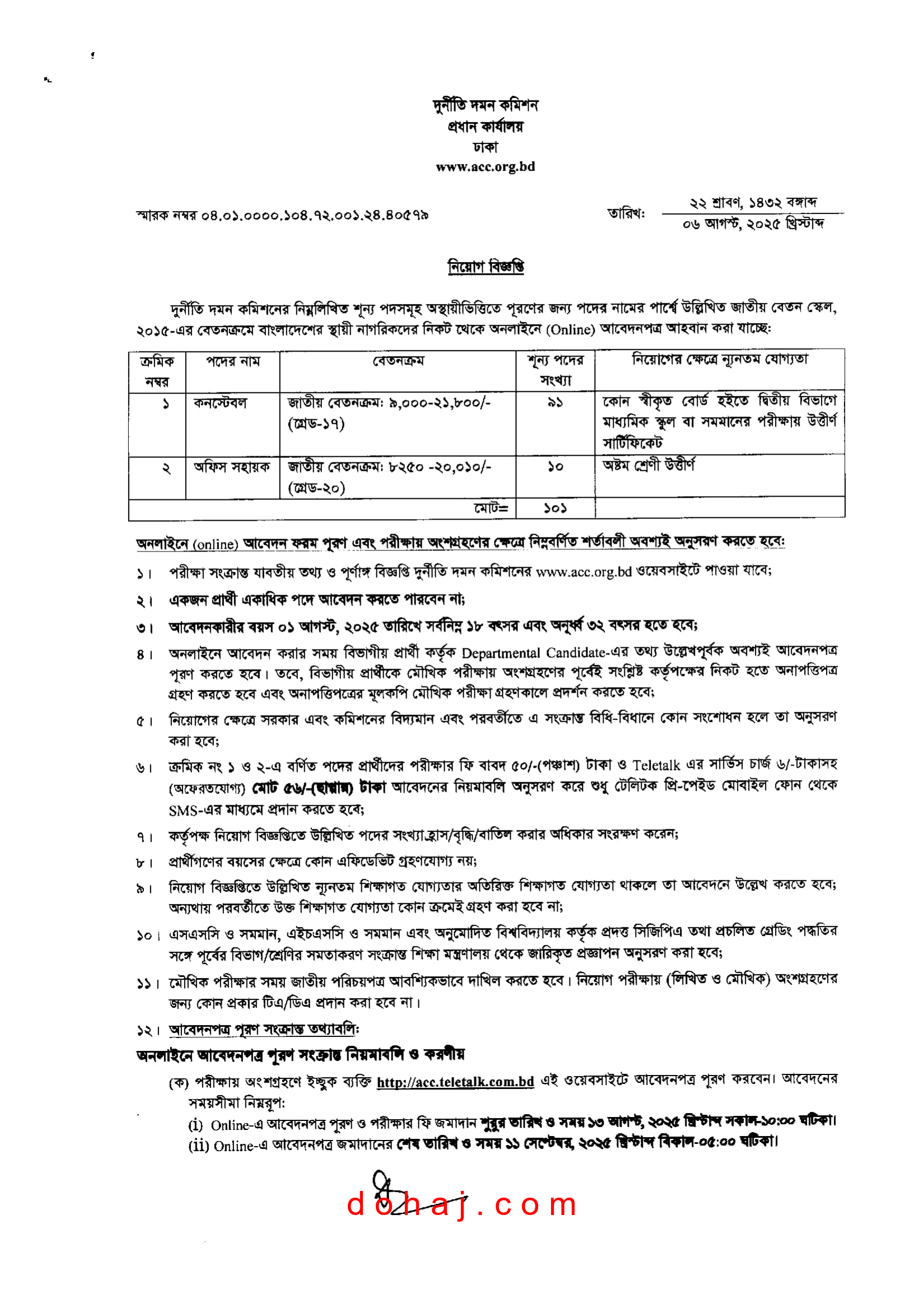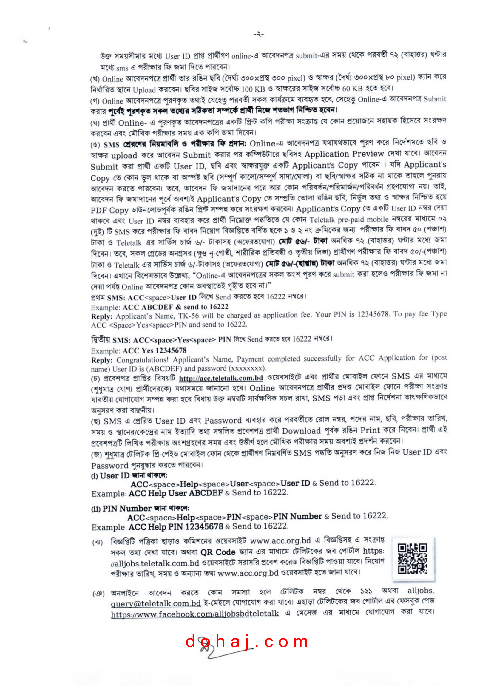 আবেদনের নিয়ম: আগ্রহী প্রার্থীরা অনলাইনে http://acc.teletalk.com.bd ওয়েবসাইটের মাধ্যমে আবেন করতে পারবেন।