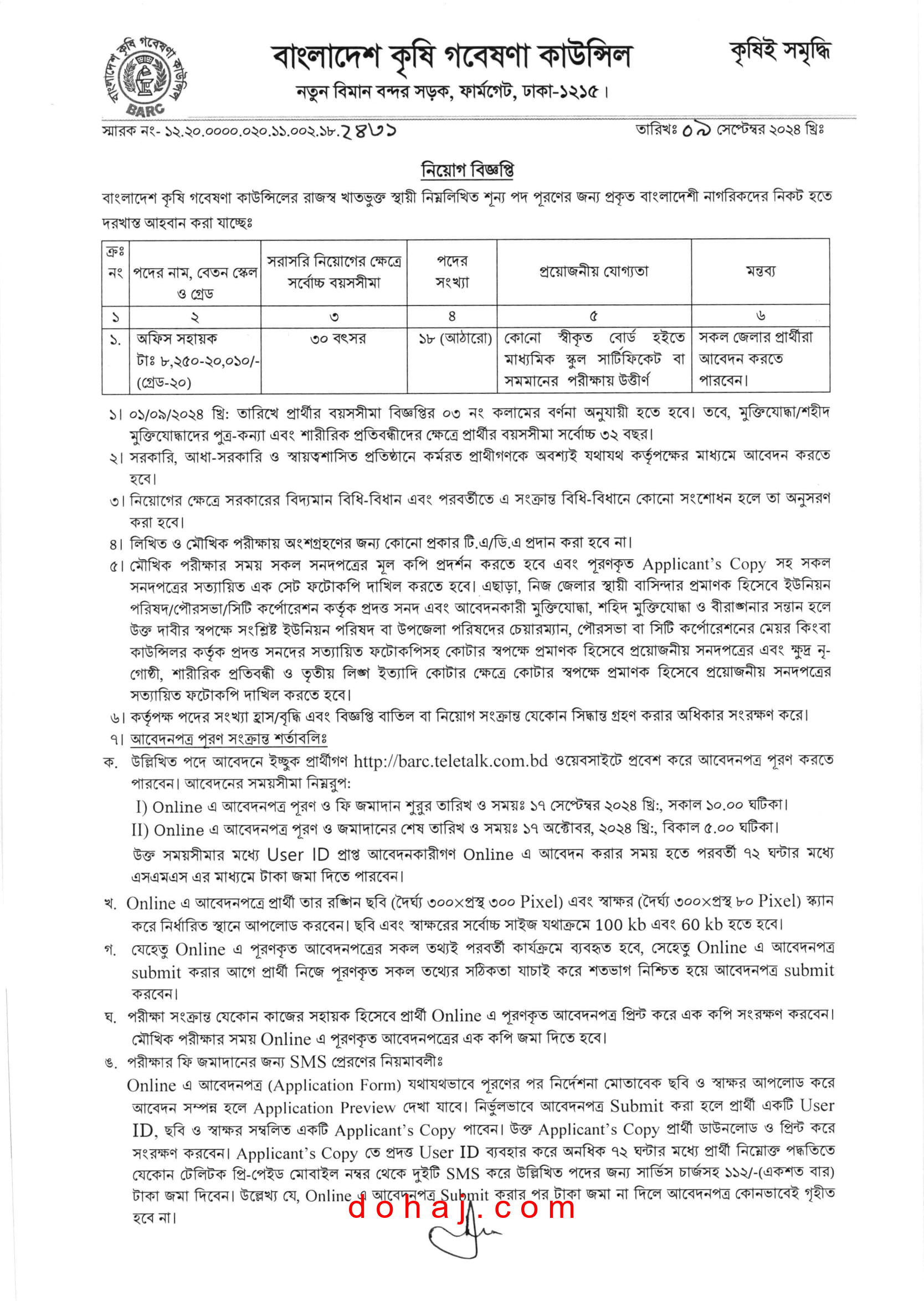 আবেদন প্রক্রিয়া: আগ্রহী প্রার্থীরা অনলাইনে http://barc.teletalk.com.bd এই ওয়েবসাইটে গিয়ে আবেদনপত্র পূরণ করতে পারবেন।