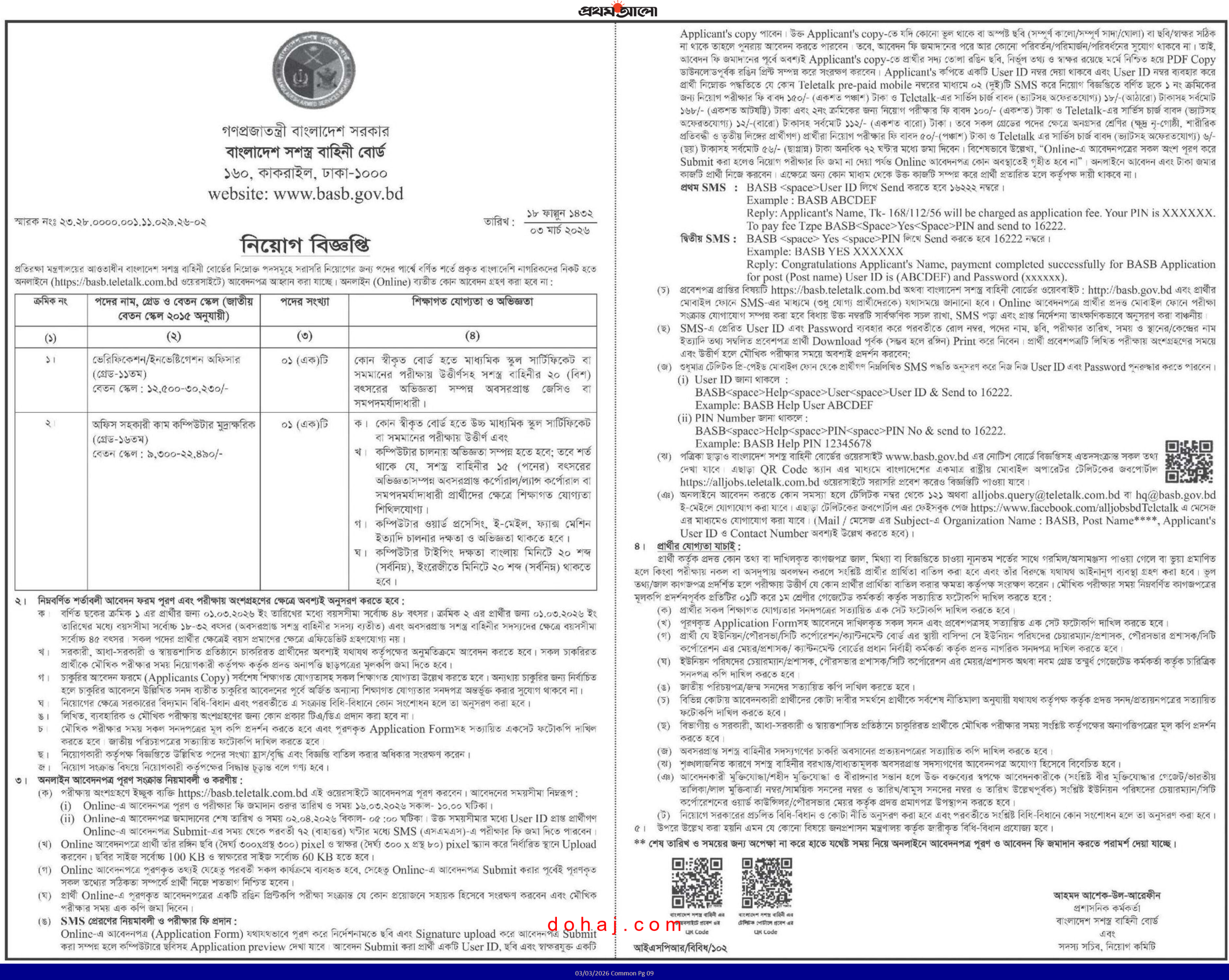আবেদন প্রক্রিয়া: আগ্রহী প্রার্থীরা অনলাইনে https://basb.teletalk.com.bd এই লিংকের মাধ্যমে আবেদন করতে পারবেন।