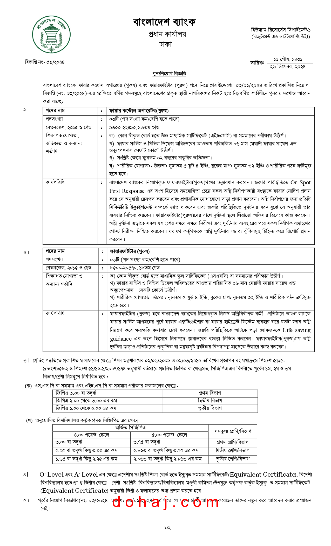 আবেদনের নিয়ম: আগ্রহীরা বাংলাদেশ ব্যাংকের ওয়েবসাইট erecruitment.bb.org.bd এর মাধ্যমে আবেদন করতে পারবেন।
