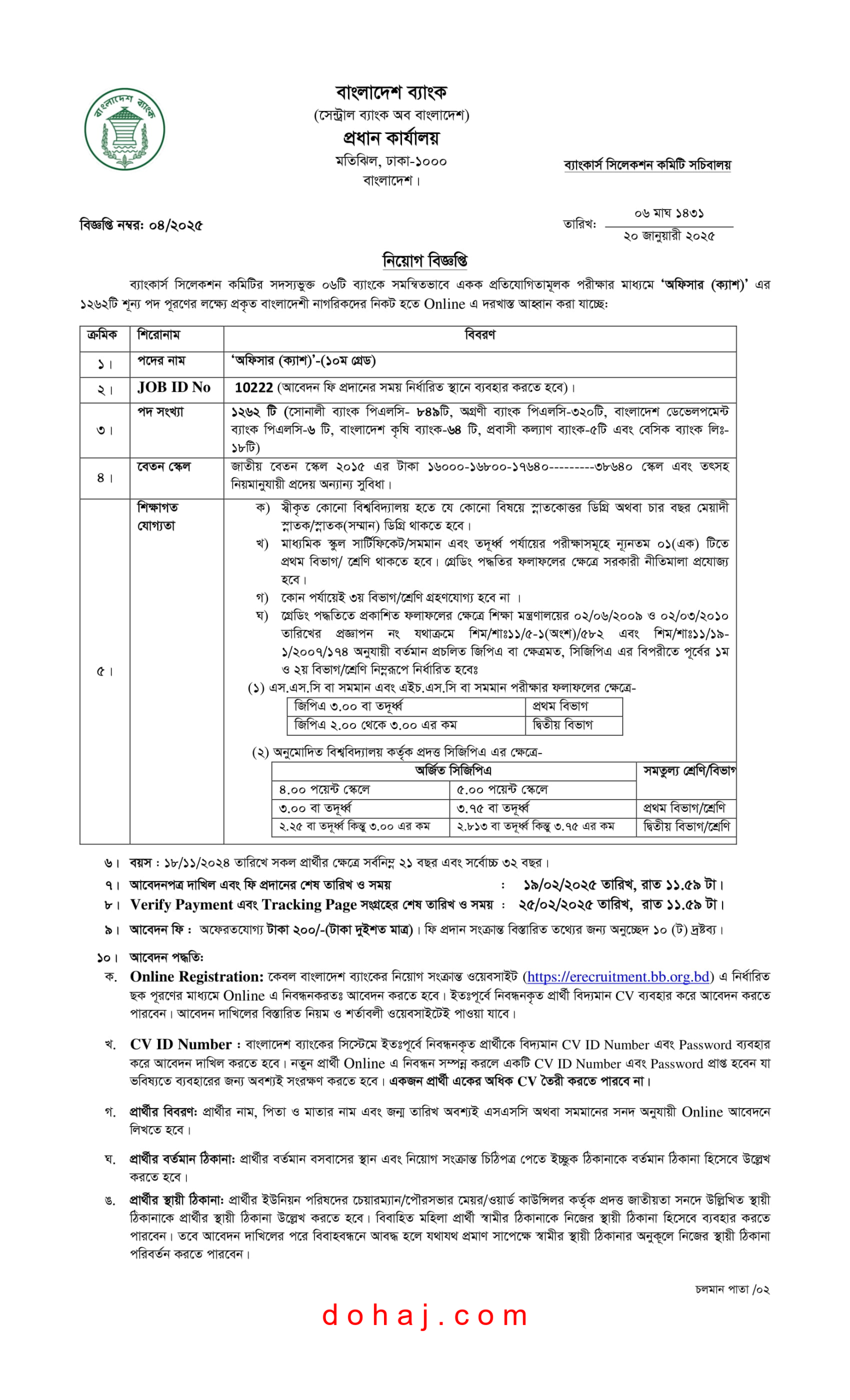 Bangladesh Bank Job Circular 2025: বাংলাদেশ ব্যাংক এর শূন্য পদসমূহে জনবল নিয়োগ দেয়া হবে। বাংলাদেশ ব্যাংক ০৯ টি পদে ১০৯ জনকে নিয়োগ দেবে। উক্ত পদ গুলোতে নারী-পুরুষ উভয়ই আবেদন করতে পারবেন। আগ্রহী প্রার্থীরা অনলাইনে আবেদন করতে পারবেন। সম্পূর্ণ বিজ্ঞপ্তি বিস্তারিত দেওয়া হল।