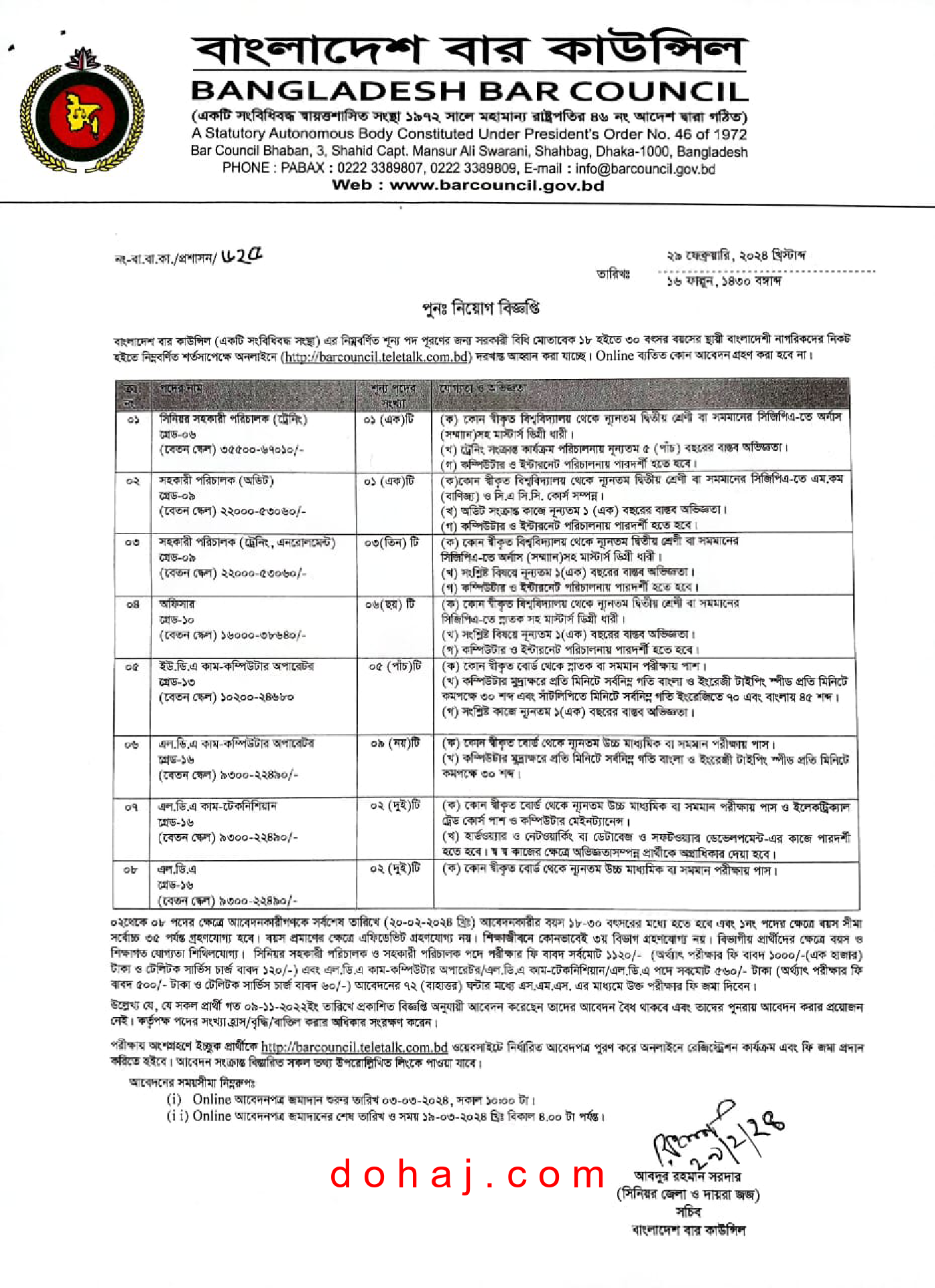 আবেদনের নিয়ম: আগ্রহী প্রার্থীরা অনলাইনে http://barcouncil.teletalk.com.bd ওয়েবসাইটের মাধ্যমে আবেদন করতে পারবেন।