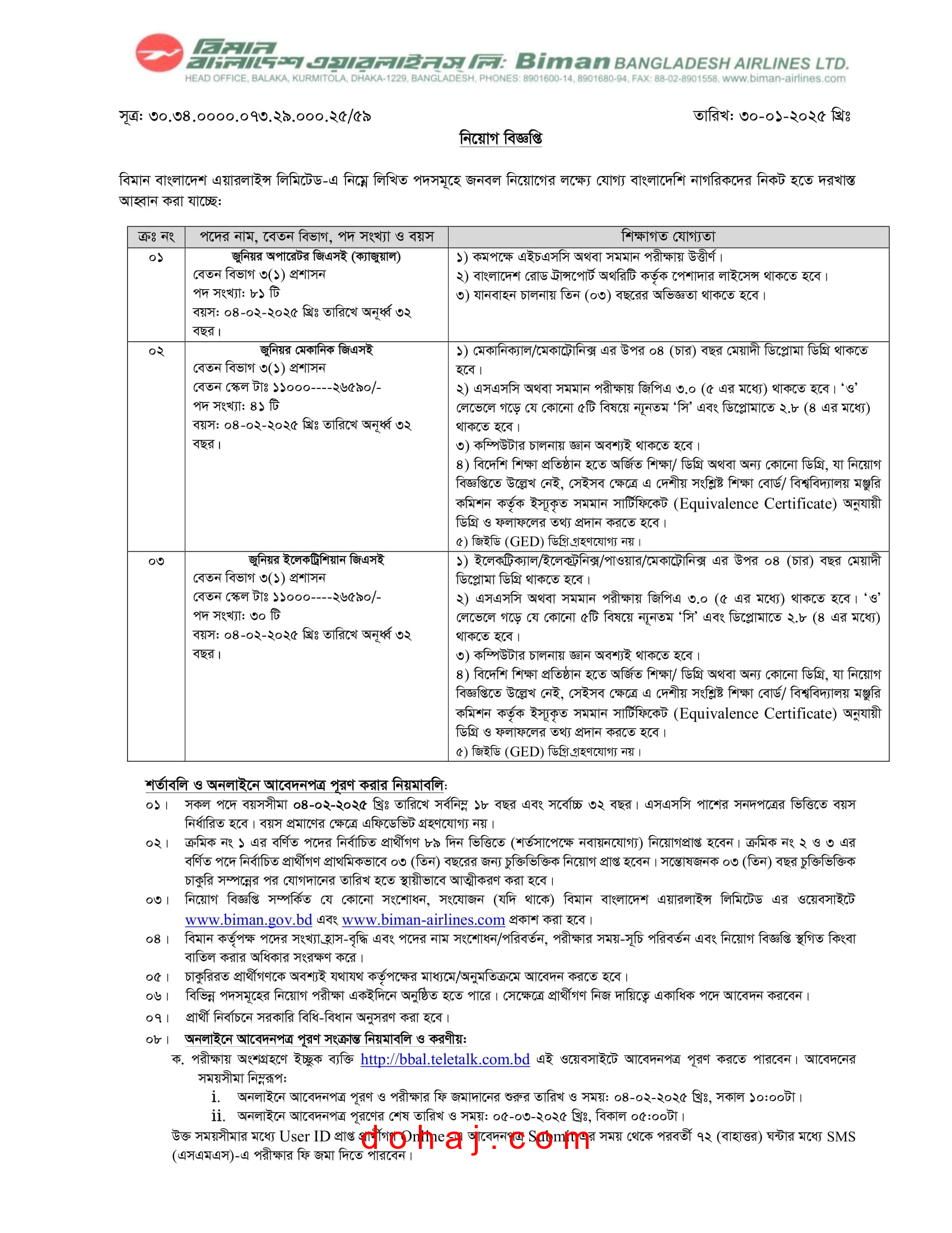 আবেদনের শেষ সময়: ২৭ ফেব্রুয়ারি ২০২৫ তারিখ বিকেল ০৫ টা পর্যন্ত আবেদন করা যাবে।