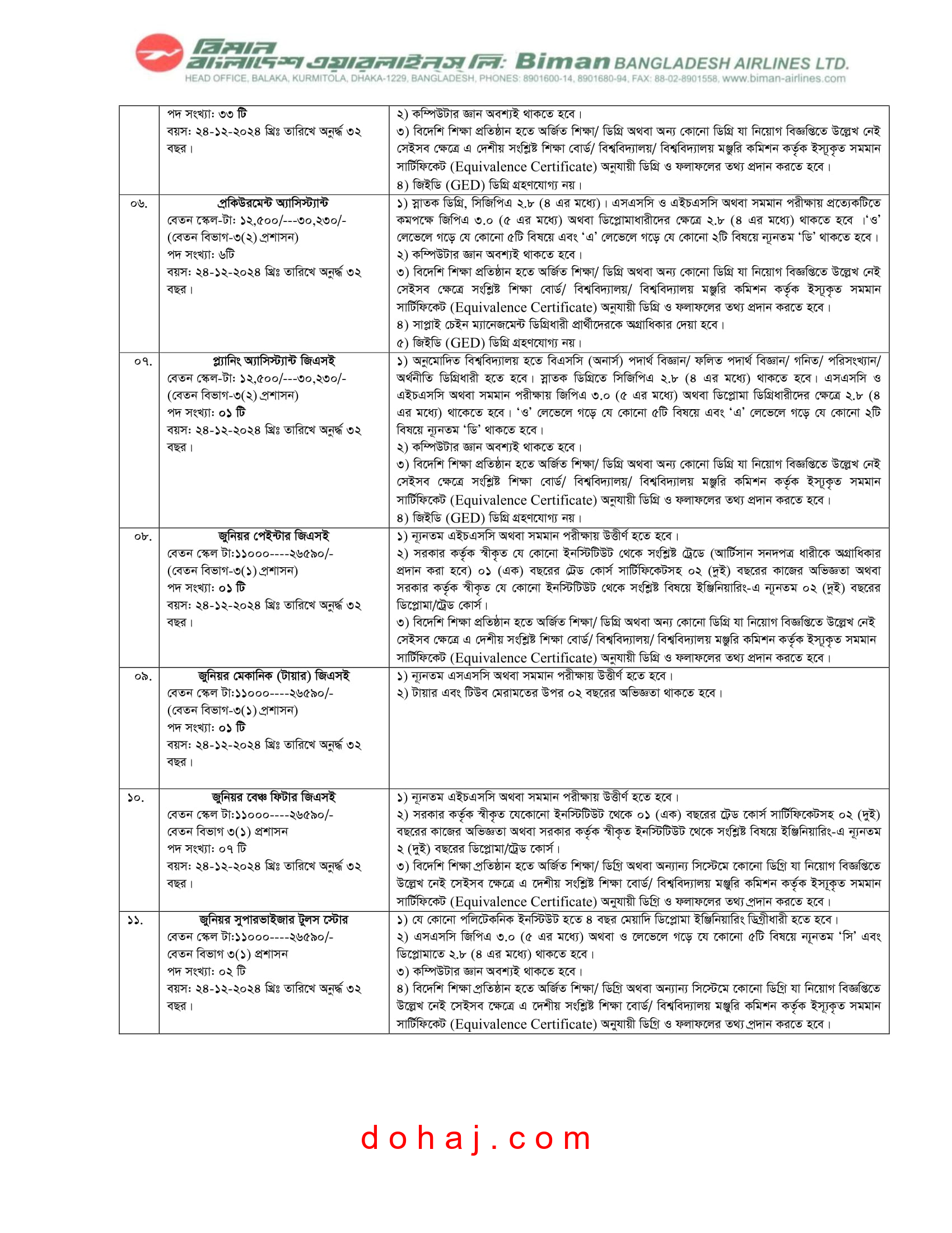 বেতন স্কেল: ১১,০০০-২৬,৫৯০ টাকা।