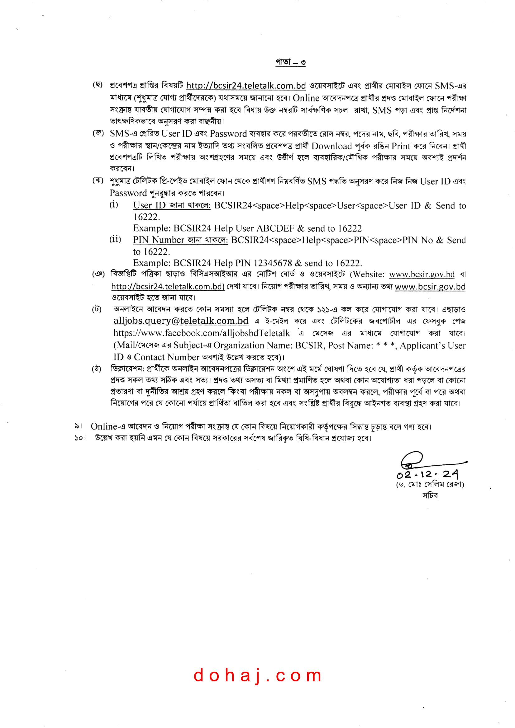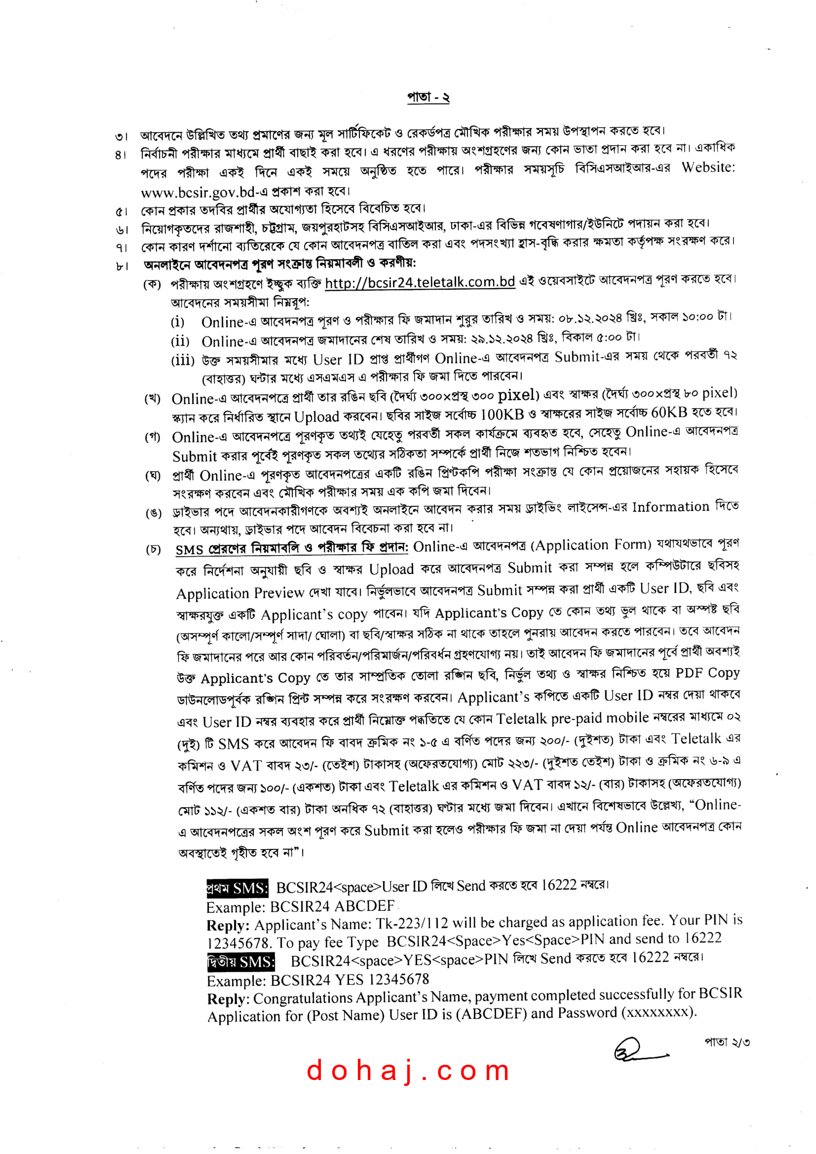আবেদনের নিয়ম: আগ্রহী প্রার্থীরা অনলাইনে http://bcsir24.teletalk.com.bd এই ওয়েবসাইটে গিয়ে আবেদনপত্র পূরণ করতে পারবেন।