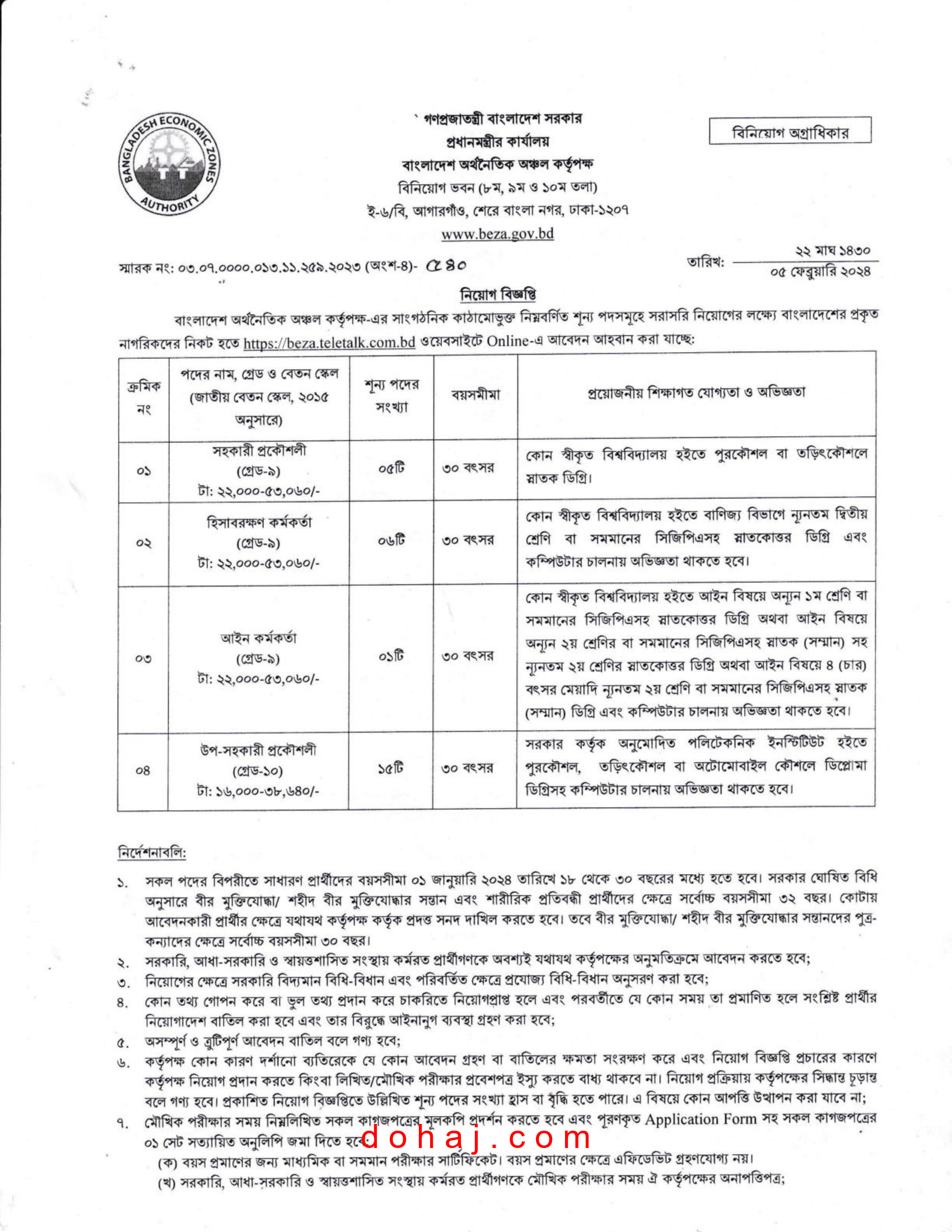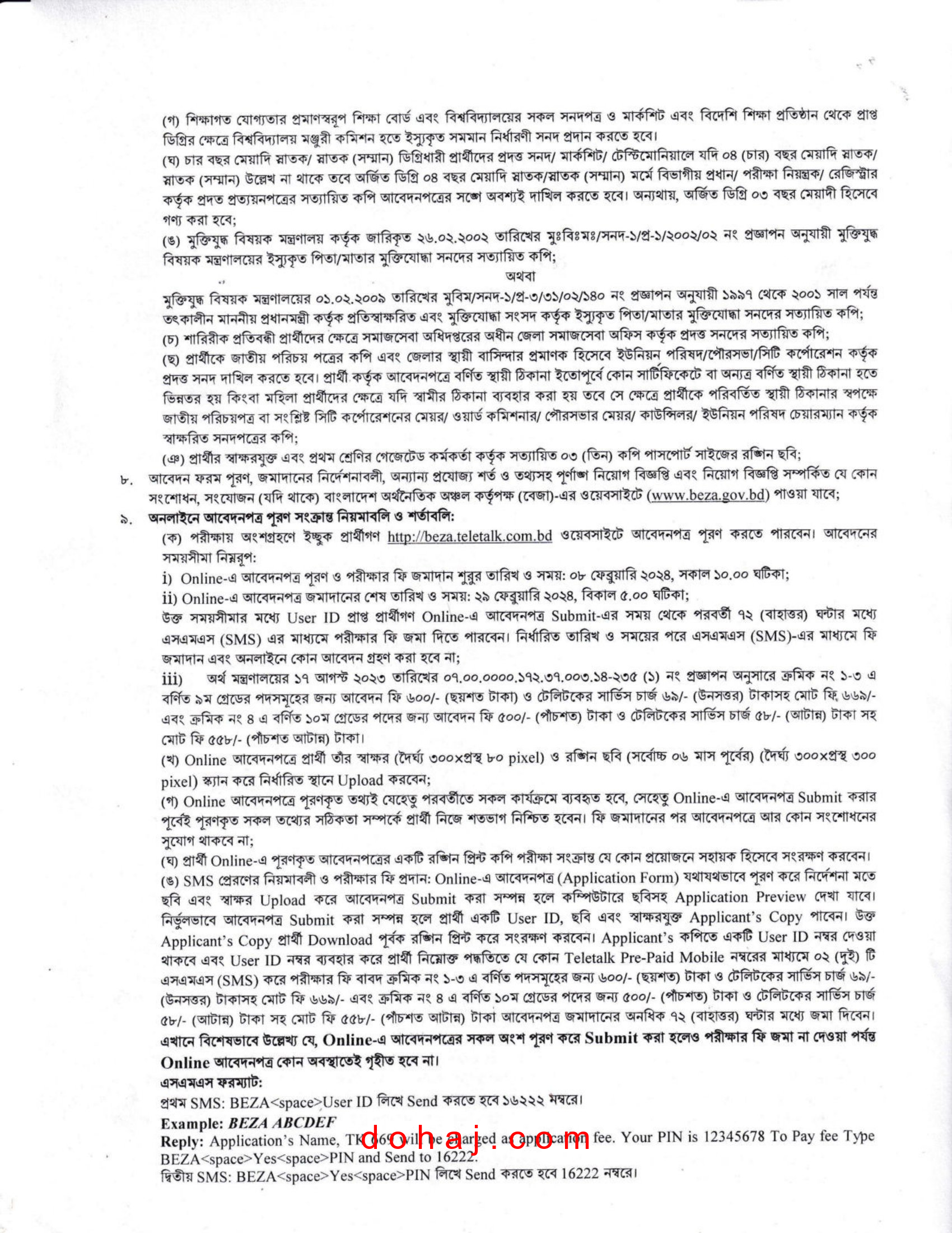 আবেদনের নিয়ম: আগ্রহী প্রার্থীরা অনলাইনে http://beza.teletalk.com.bd এই ওয়েবসাইটের মাধ্যমে আবেদন করতে পারবেন।