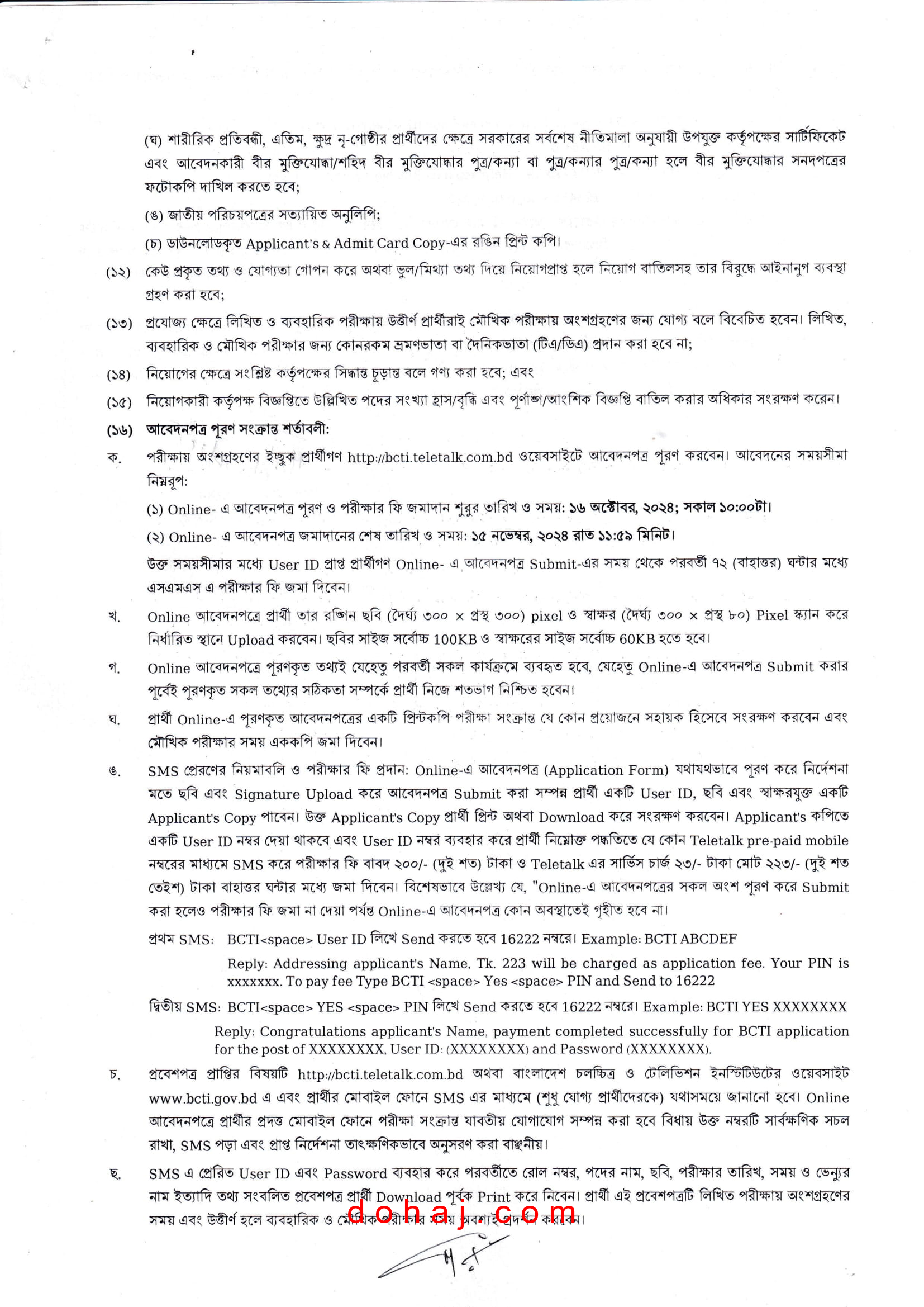 আবেদন প্রক্রিয়া: আগ্রহী প্রার্থীরা অনলাইনে http://bcti.teletalk.com.bd এই ওয়েবসাইটে গিয়ে আবেদনপত্র পূরণ করতে পারবেন।
