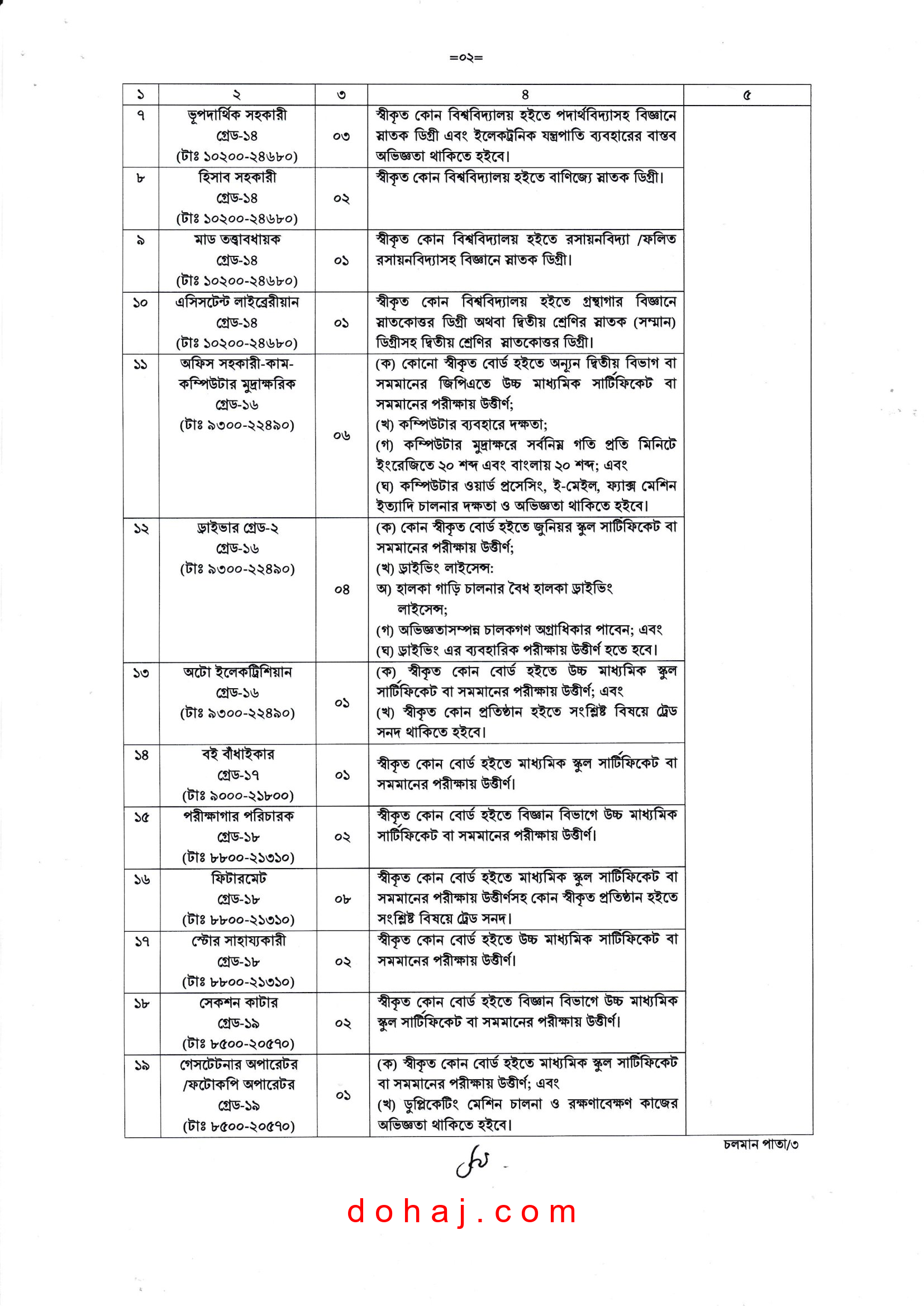 শিক্ষাগত যোগ্যতা: এইচএসসি পাশসহ সংশ্লিষ্ট বিষয়ে ট্রেড সনদ।