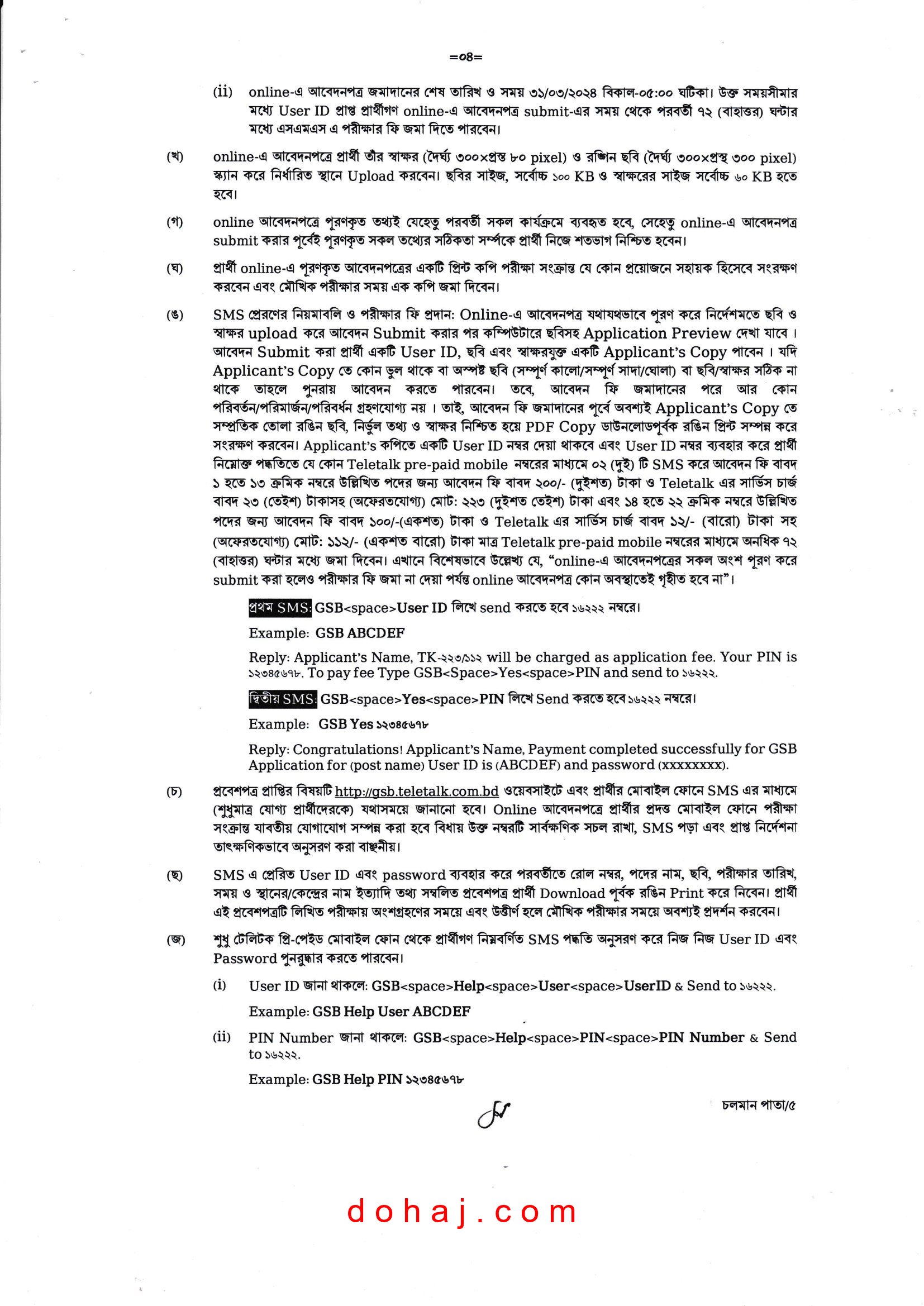 আবেদন প্রক্রিয়া: আগ্রহী প্রার্থীদের http://gsb.teletalk.com.bd এই ওয়েবসাইটের মাধ্যমে আবেদন করতে হবে।