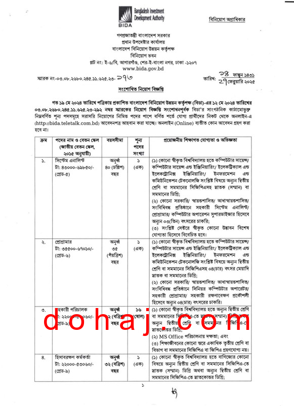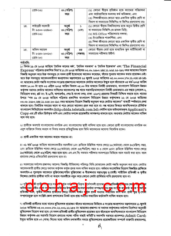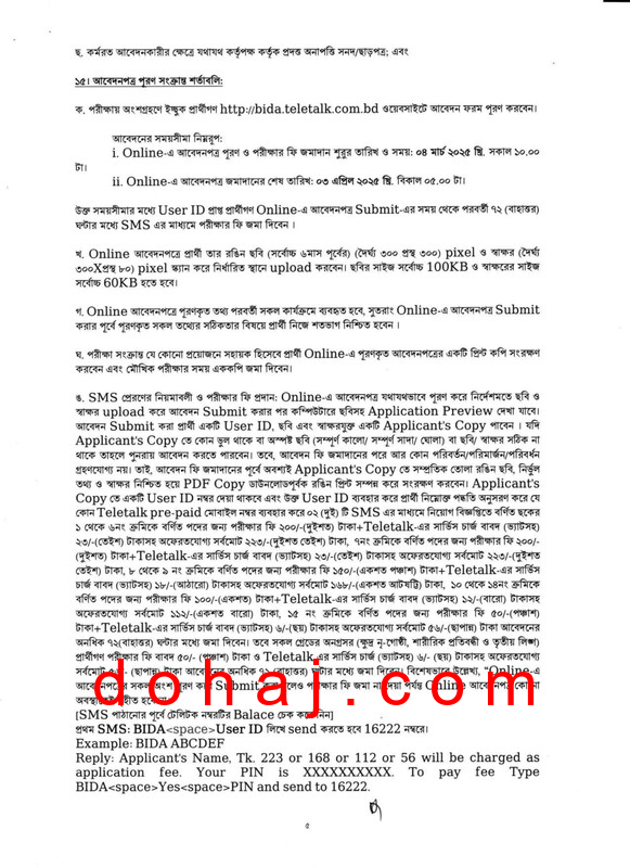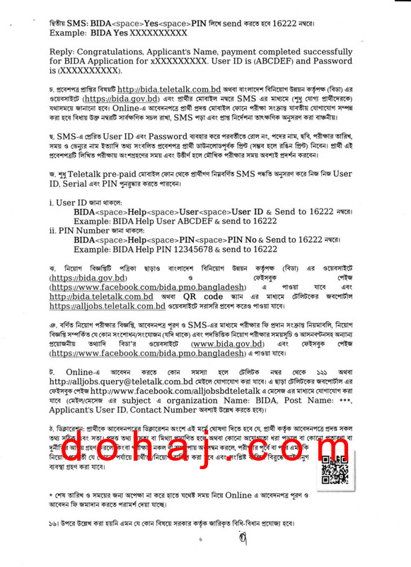 আবেদন প্রক্রিয়া: আগ্রহী প্রার্থীরা অনলাইনে http://bida.teletalk.com.bd এই ওয়েবসাইটে গিয়ে আবেদনপত্র পূরণ করতে পারবেন।