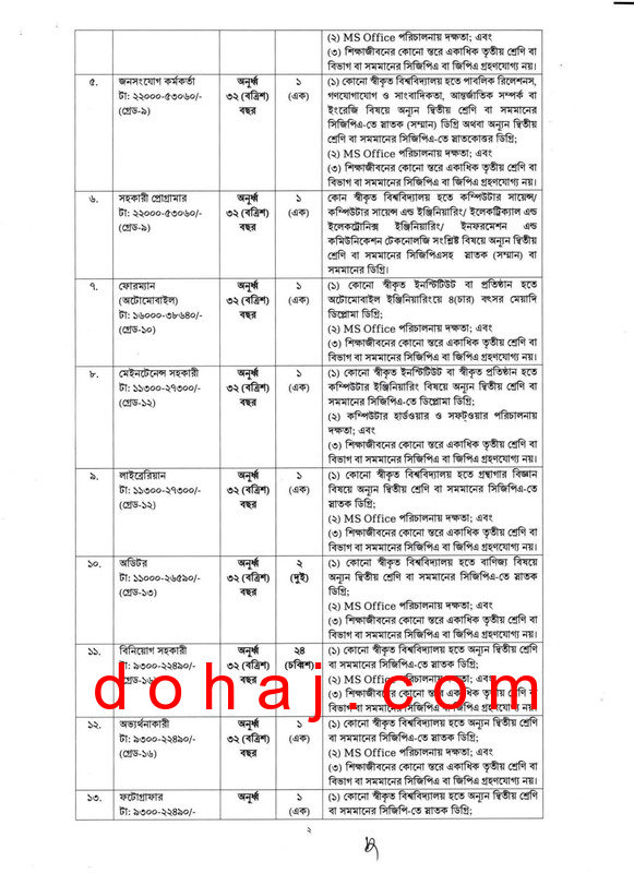 বেতন স্কেল: ৮,২৫০-২০,০১০ টাকা।