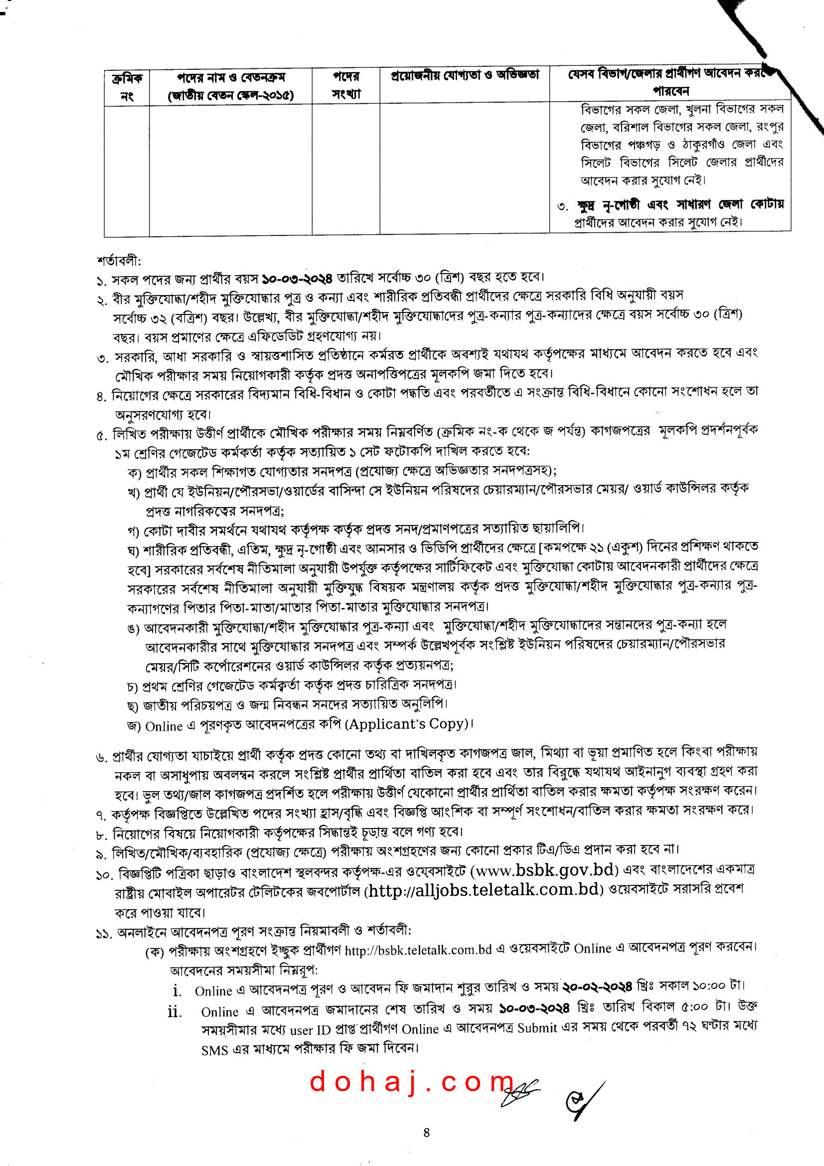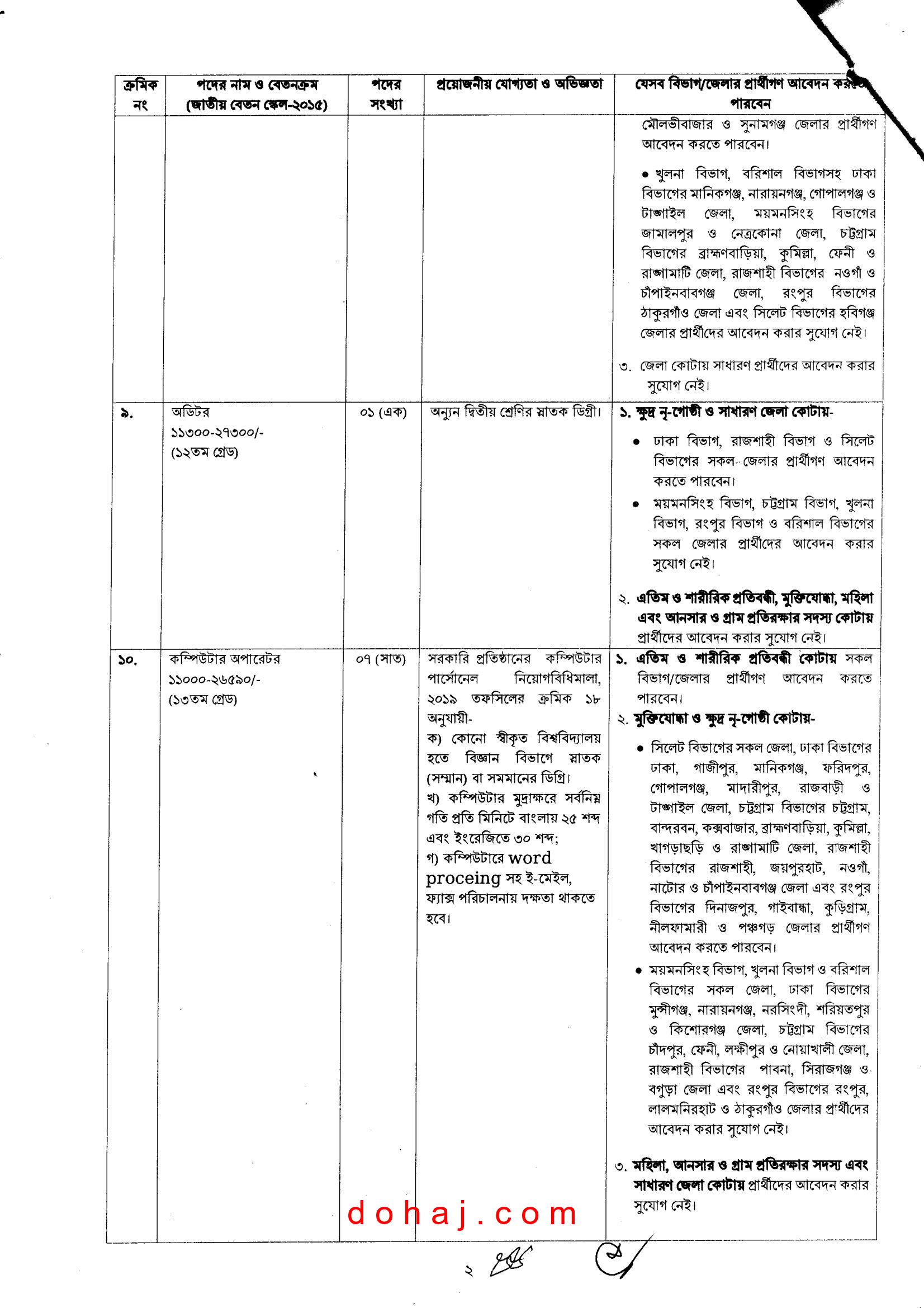 বেতন স্কেল: ৮,২৫০-২০,০১০ টাকা।