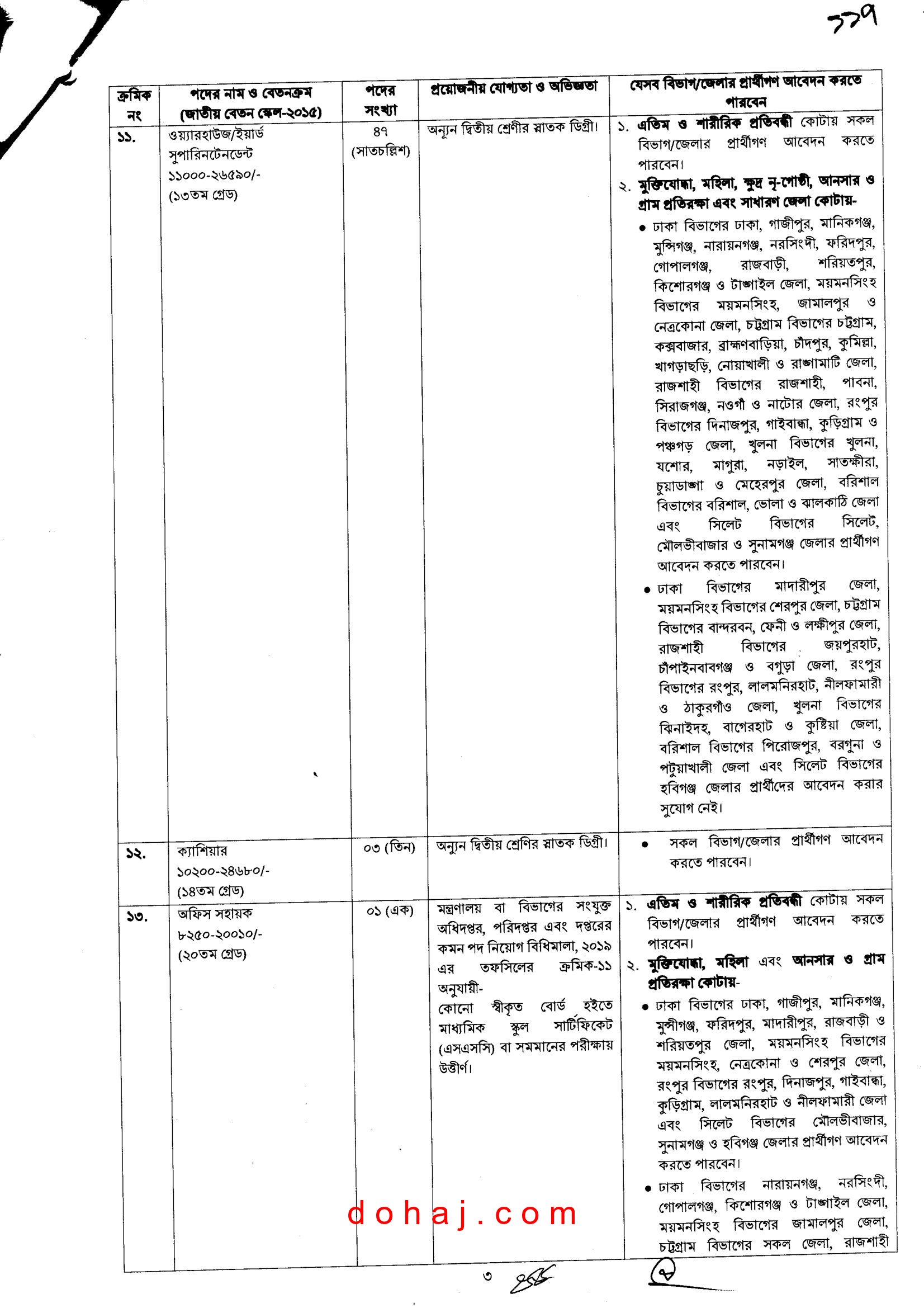 বেতন স্কেল: ১১,০০০-২৬,৫৯০ টাকা।
