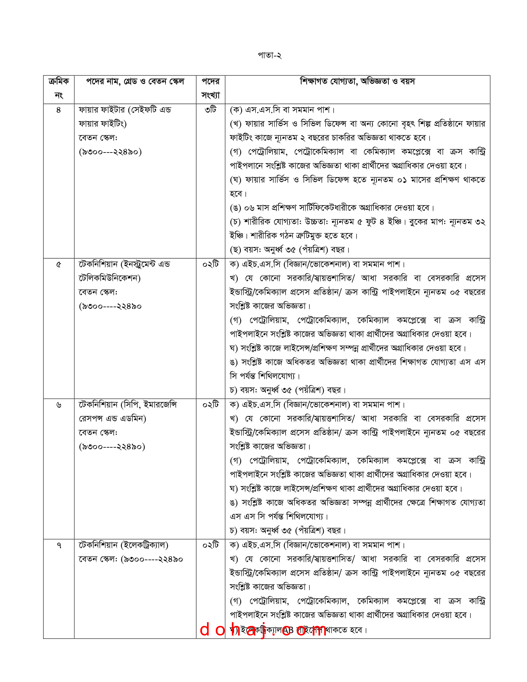 পদের নাম: ফায়ার ফাইটার (সেইফটি এন্ড ফায়ার ফাইটিং)