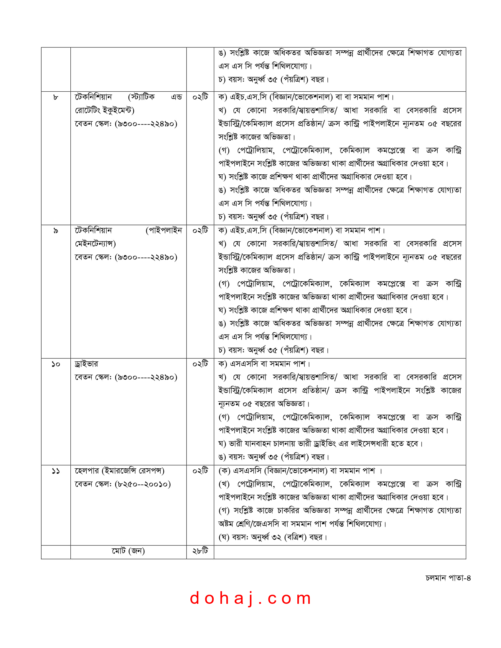 পদের নাম: টেকনিশিয়ান মেইনটেন্যান্স পাইপলাইন