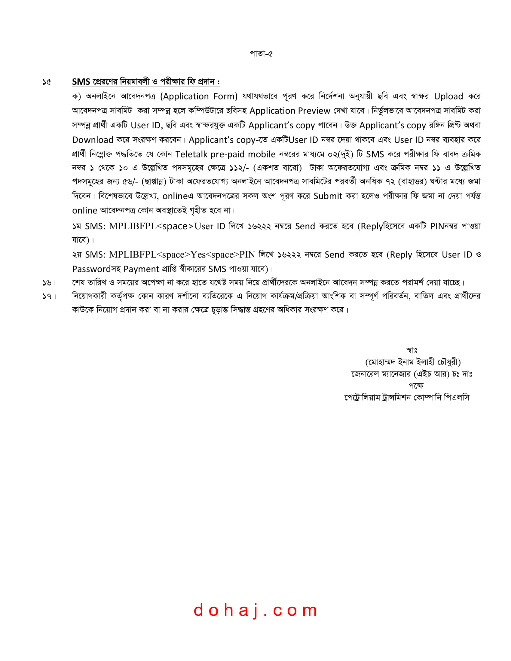 আবেদনের শেষ সময়: ১৭ ফেব্রুয়ারি ২০২৫ বিকাল ০৫:০০ টা পর্যন্ত আবেদন করা যাবে।