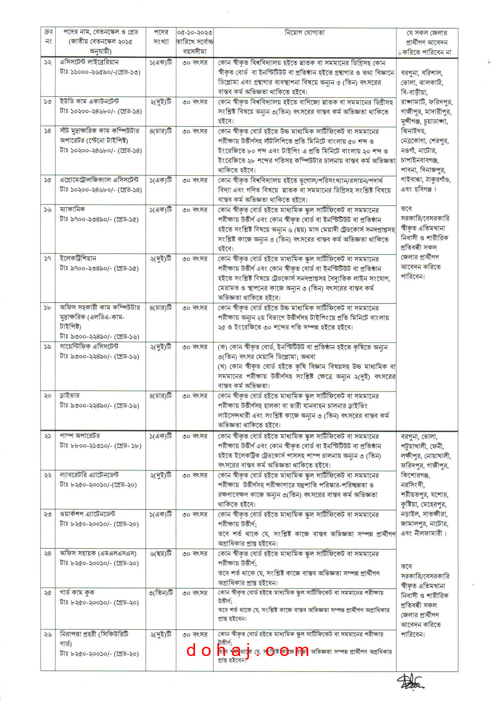 শিক্ষাগত যোগ্যতা: এসএসসি এবং সংশ্লিষ্ট বিষয়ে ট্রেড কোর্স সনদ।