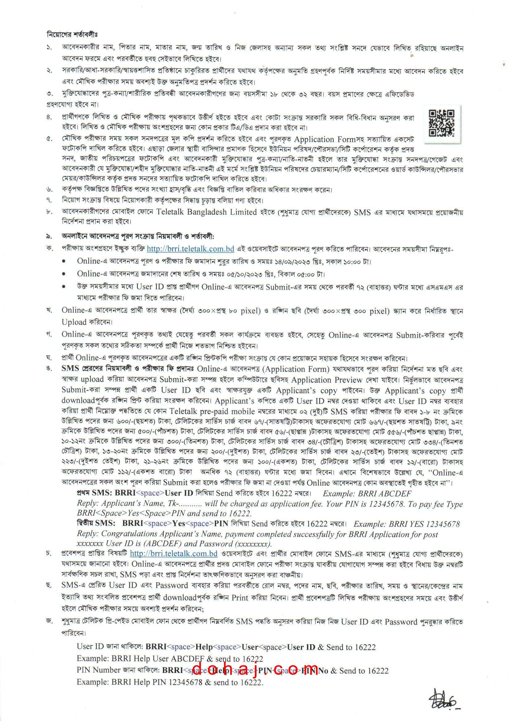 আবেদন প্রক্রিয়া: আগ্রহী প্রার্থীরা অনলাইনে http://brri.teletalk.com.bd এই ওয়েবসাইটে গিয়ে আবেদনপত্র পূরণ করতে পারবেন।