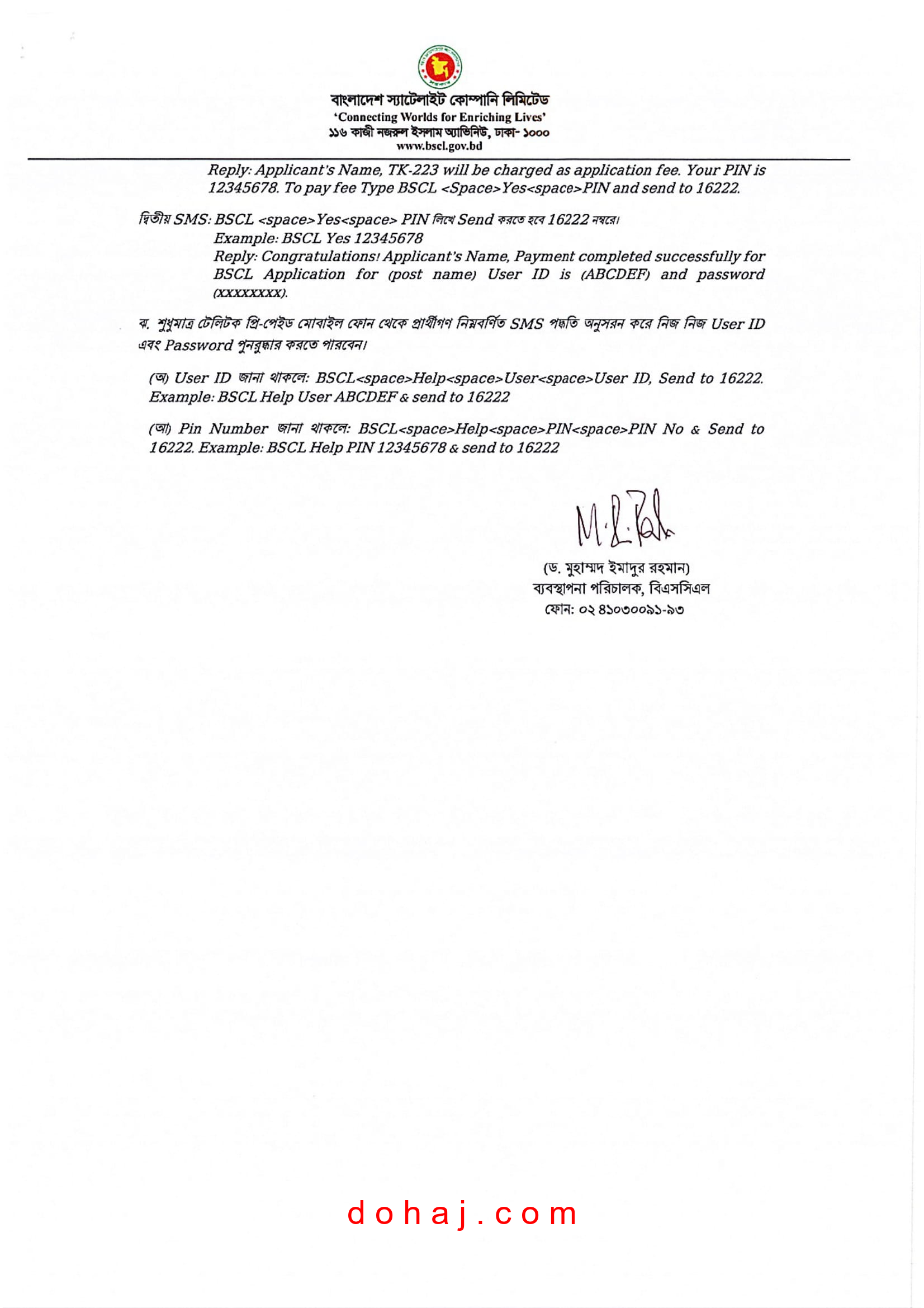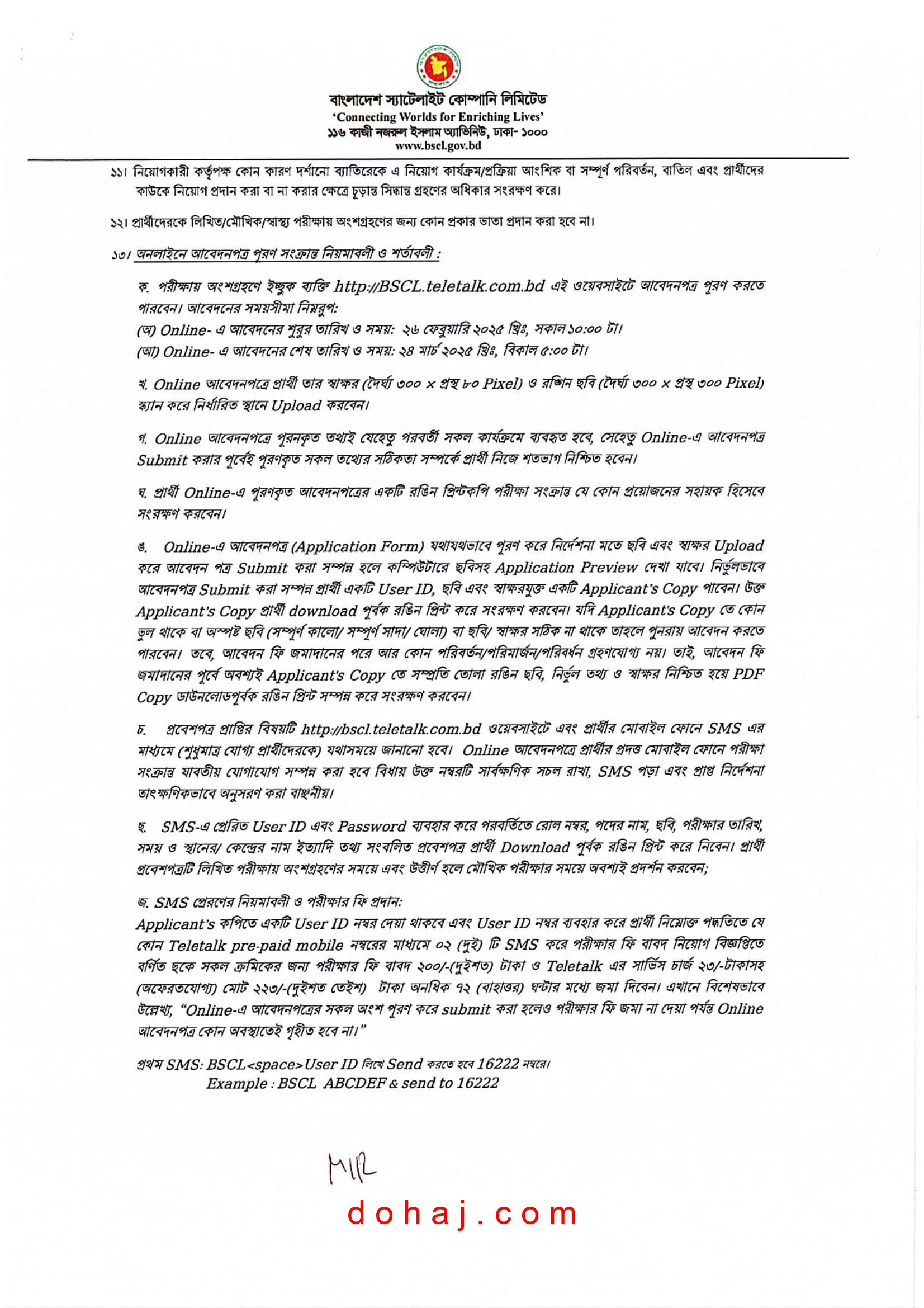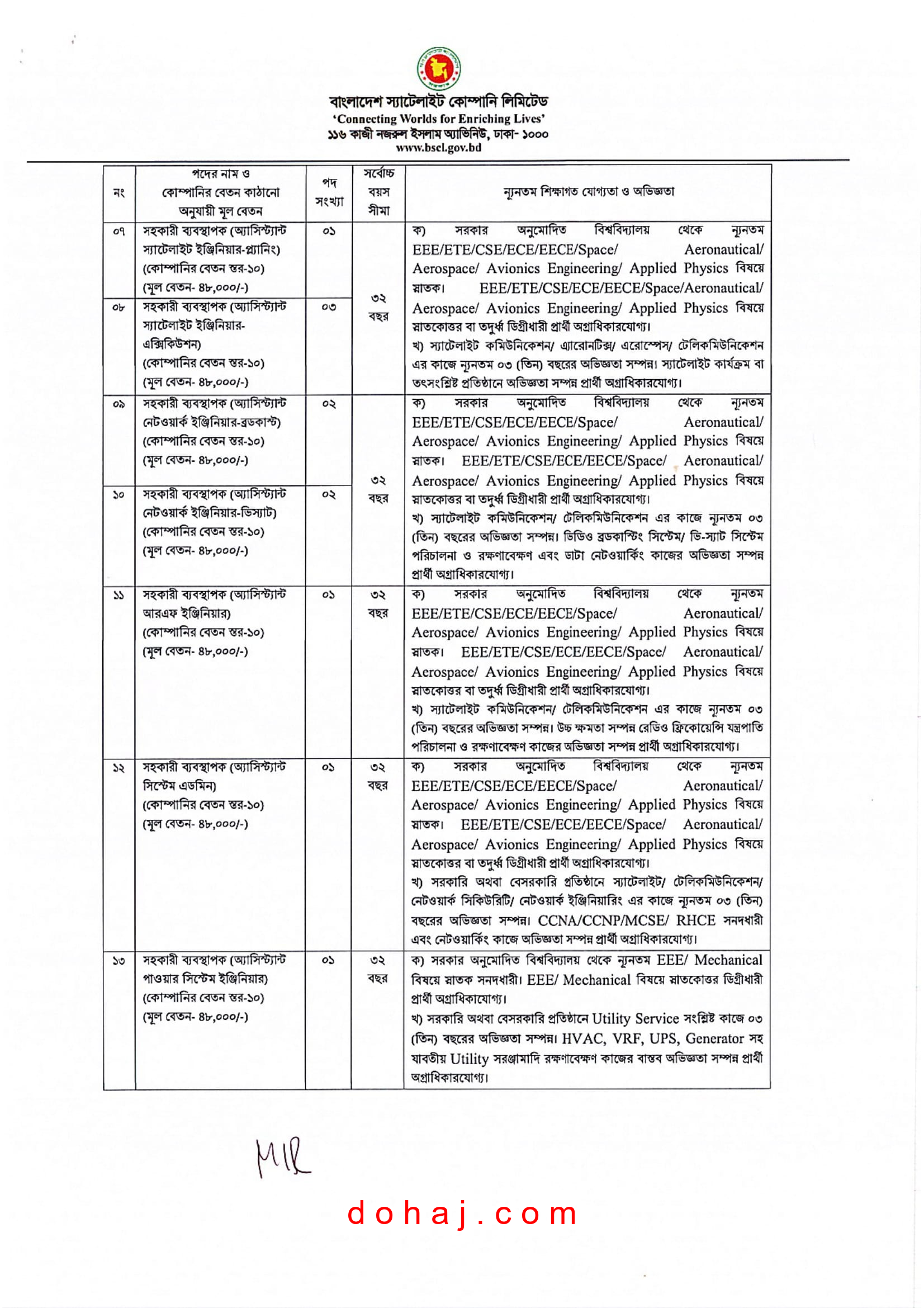 পদের নাম: সহকারী ব্যবস্থাপক (স্যাটেলাইট ইঞ্জিনিয়ার প্ল্যানিং)