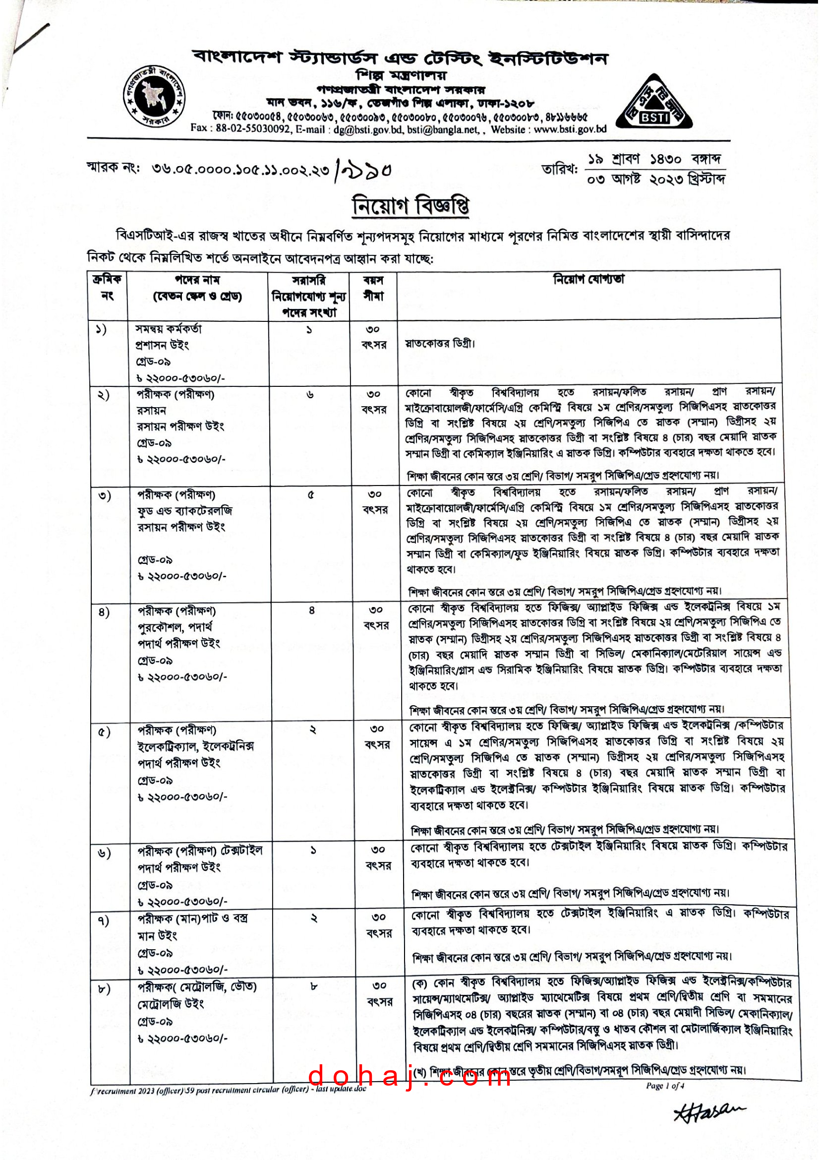 আবেদন প্রক্রিয়া: আবেদন করতে হবে অনলাইনে http://bsti.teletalk.com.bd ওয়েবসাইটের মাধমে অনলাইনে আবেদনপত্র পাঠাতে হবে।