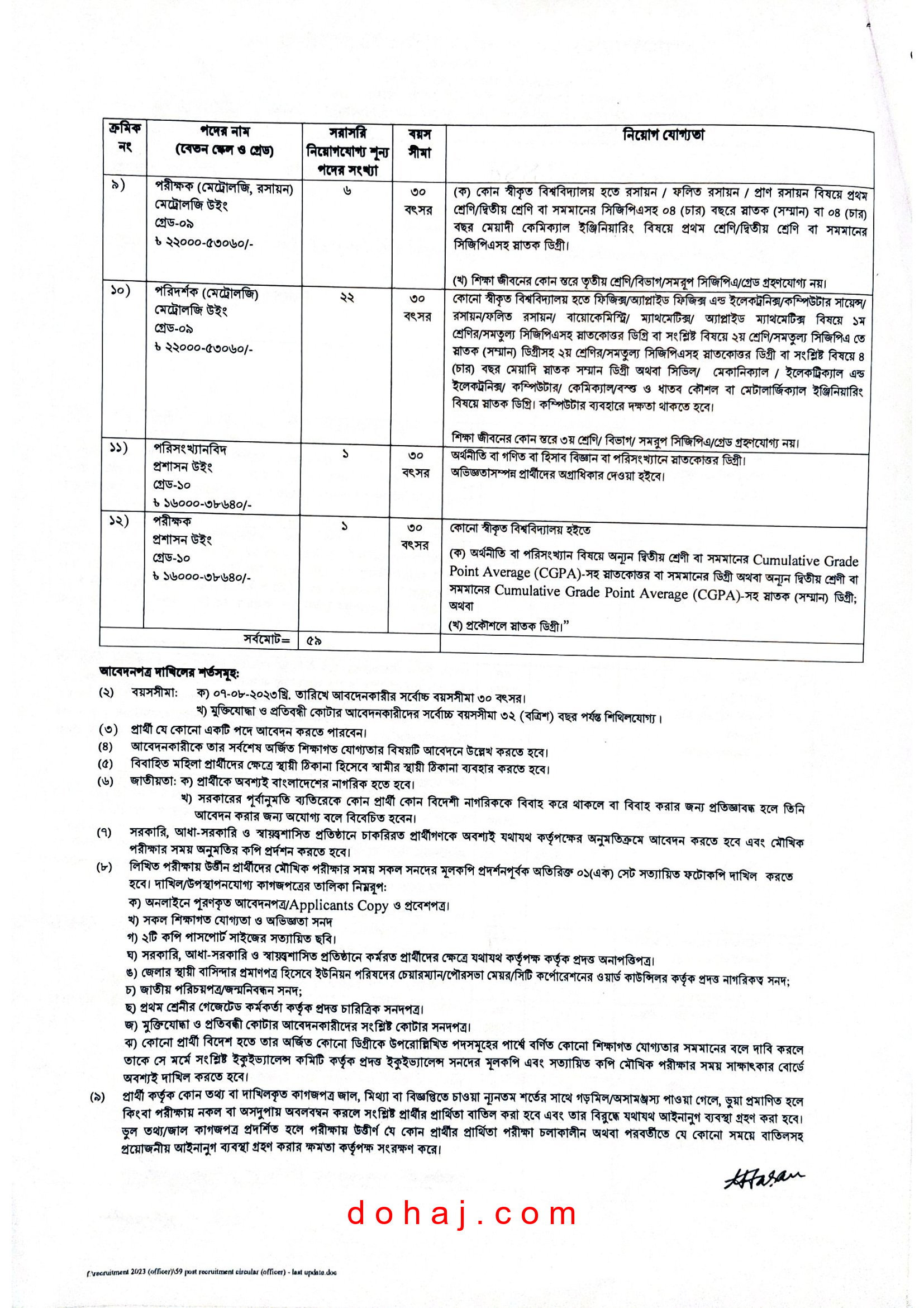 পদের নাম : পরীক্ষক (মেট্রোলজি, রসায়ন)