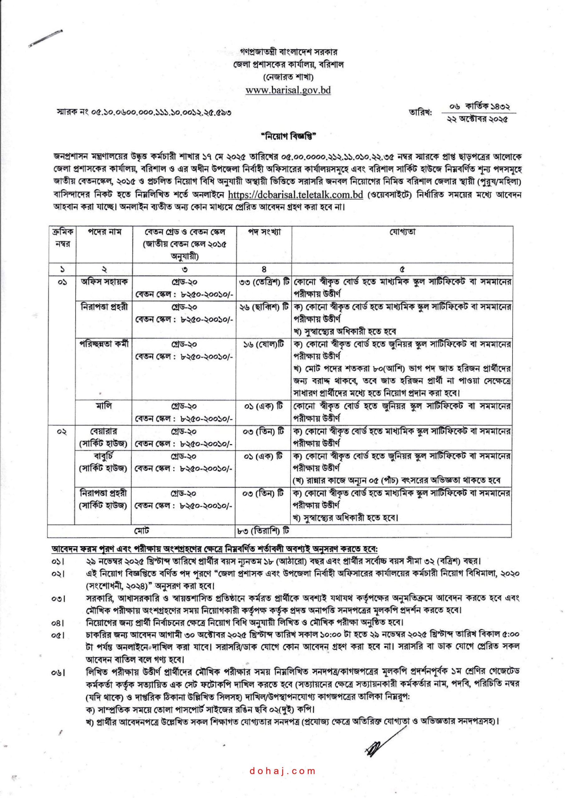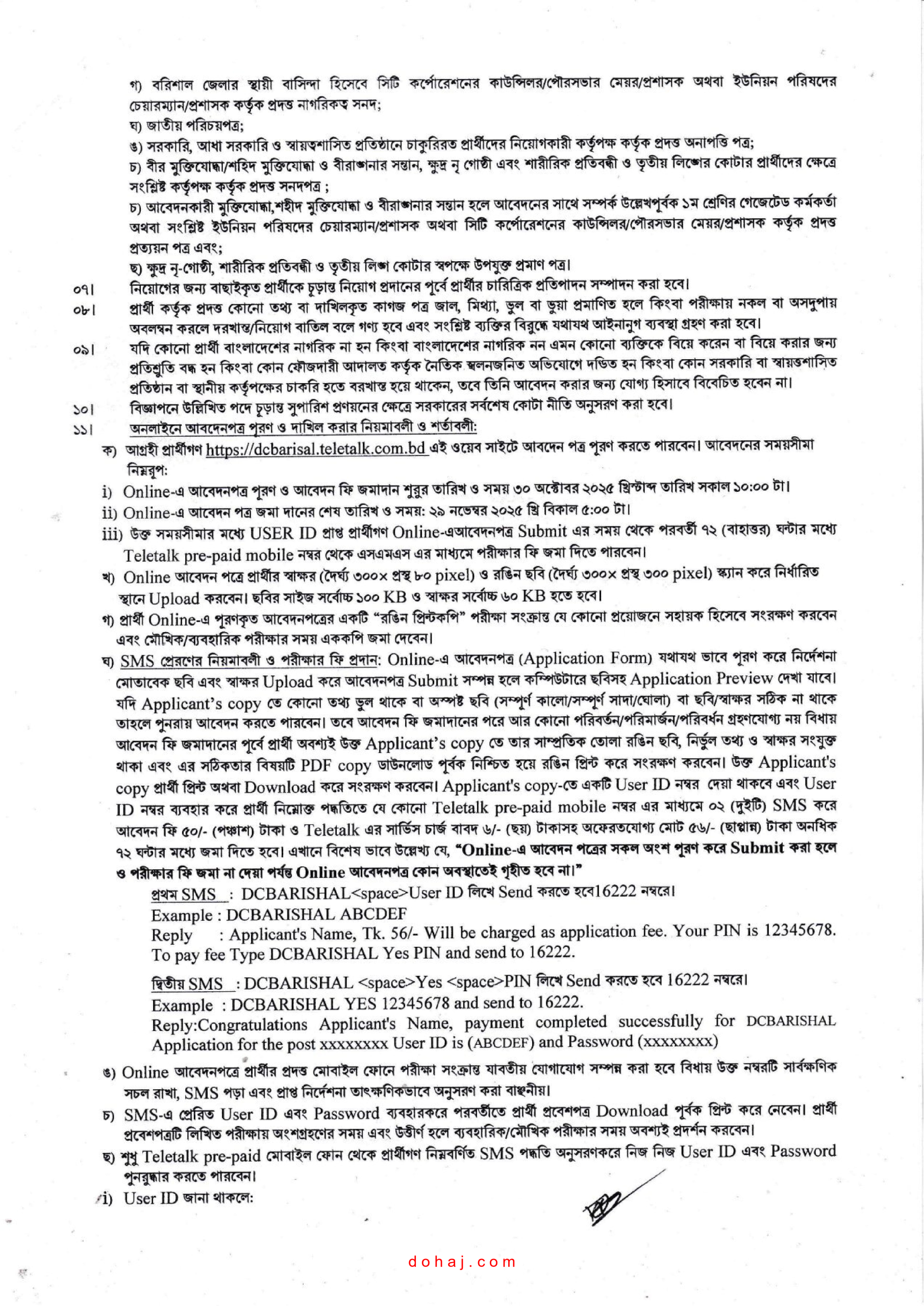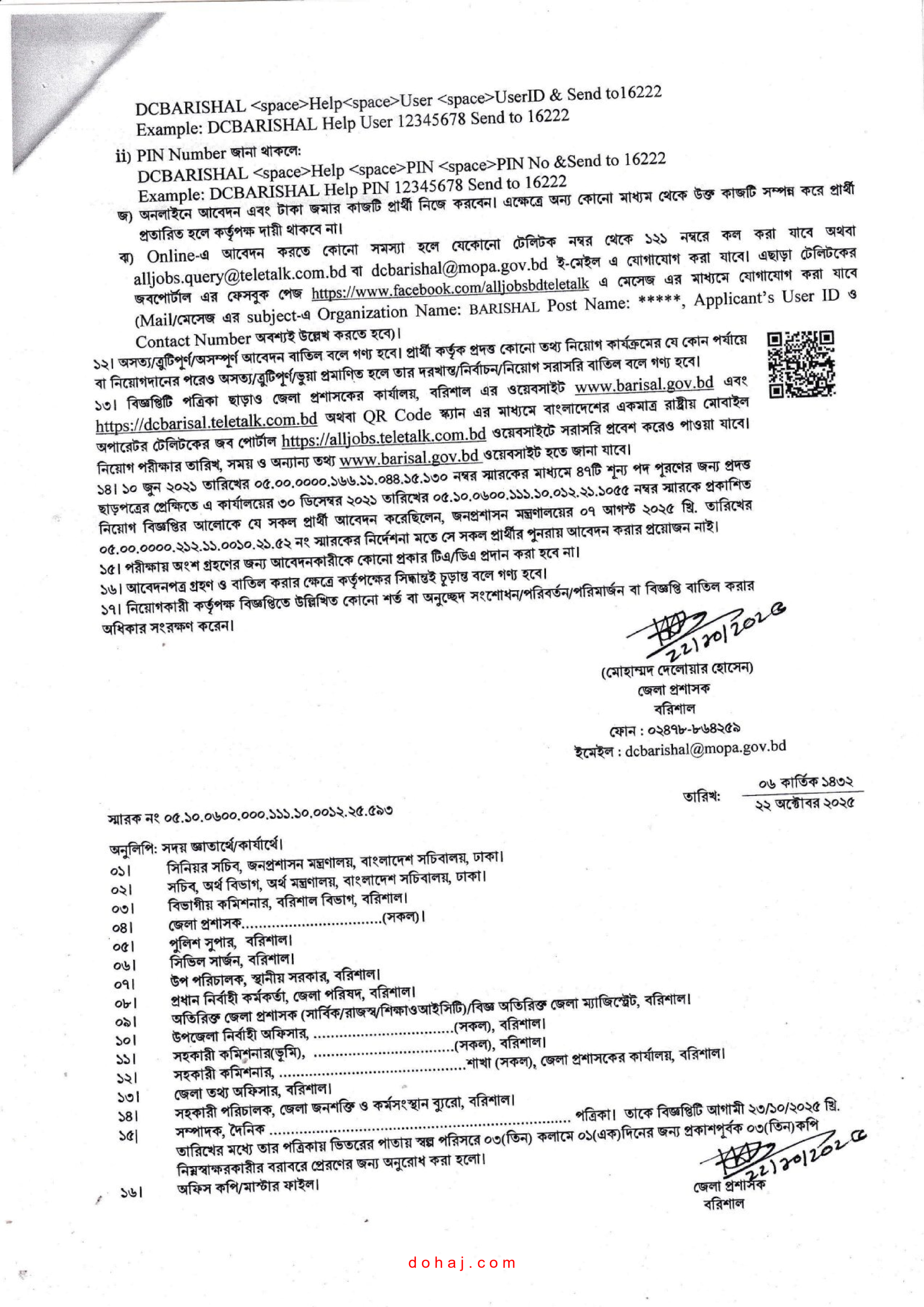 আবেদনের ঠিকানা : আগ্রহী প্রার্থীরা https://dcbarisal.teletalk.com.bd ওয়েবসাইটের মাধমে অনলাইনে আবেদন করতে পারবে।