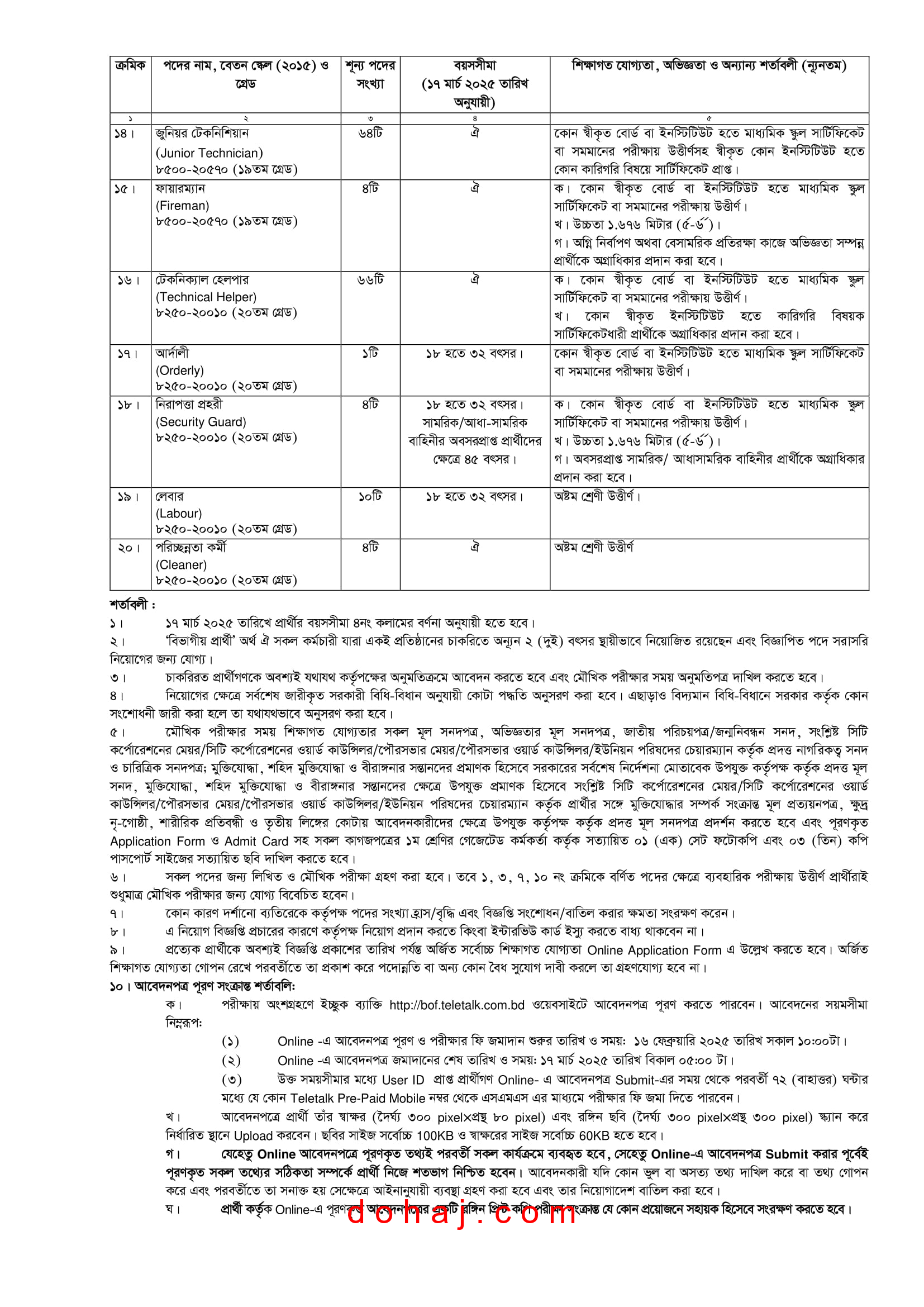 আবেদনের নিয়ম: আগ্রহী প্রার্থীরা অনলাইনে http://bof.teletalk.com.bd ওয়েবসাইটের মাধ্যমে আবেন করতে পারবেন।