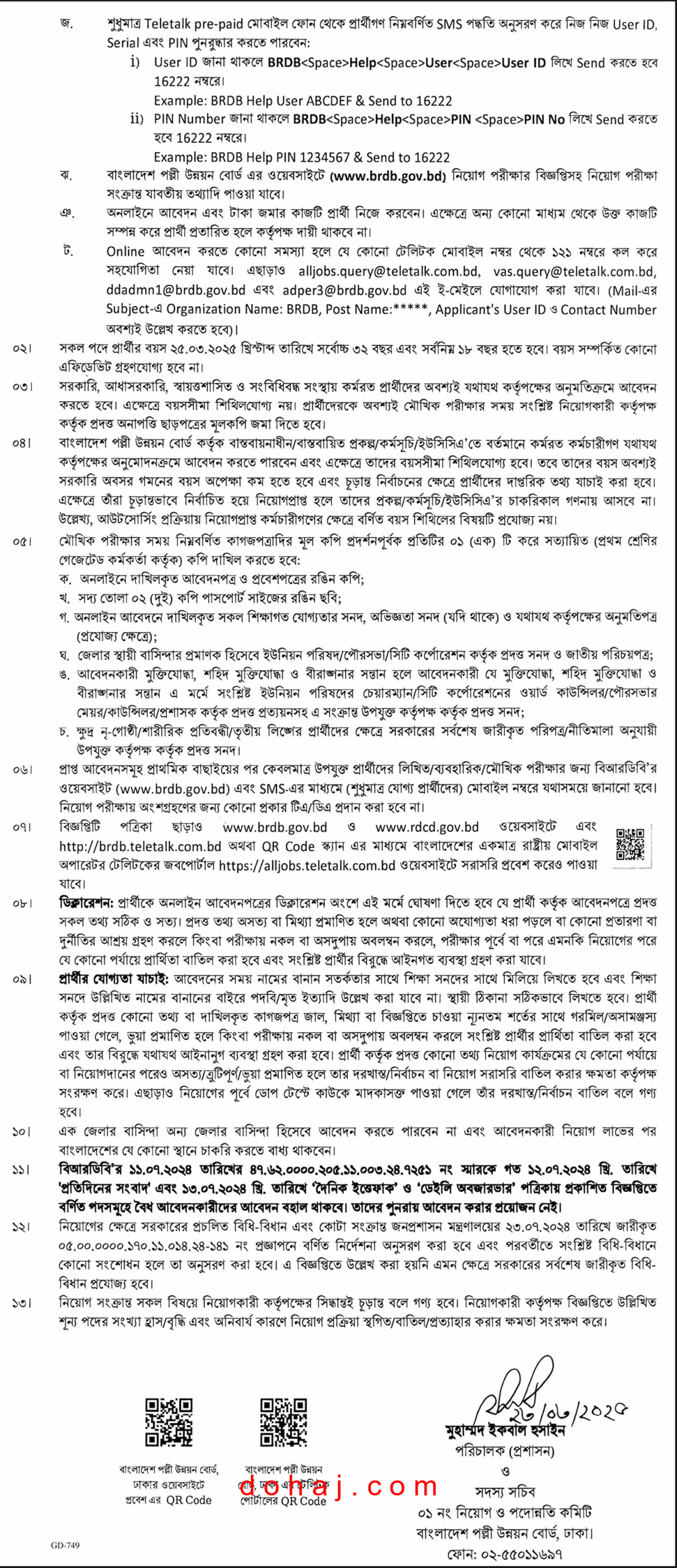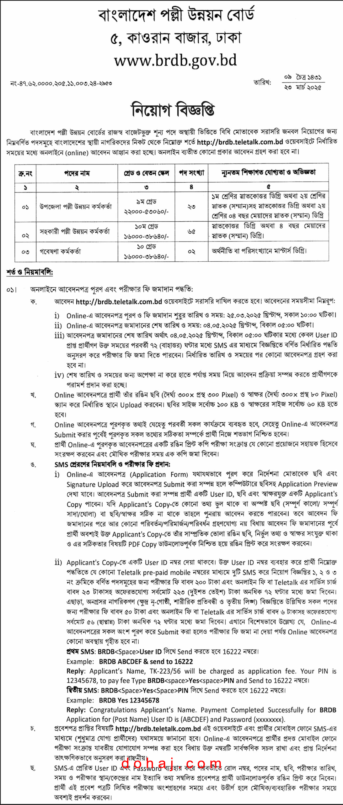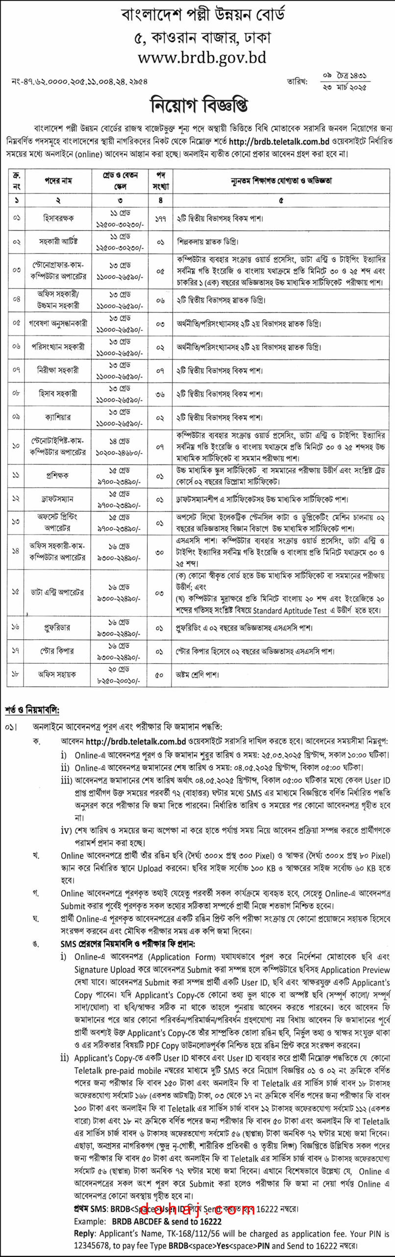 আবেদনের নিয়ম: আগ্রহী প্রার্থীরা অনলাইনে http://brdb.teletalk.com.bd/ ওয়েবসাইটের মাধ্যমে আবেন করতে পারবেন।