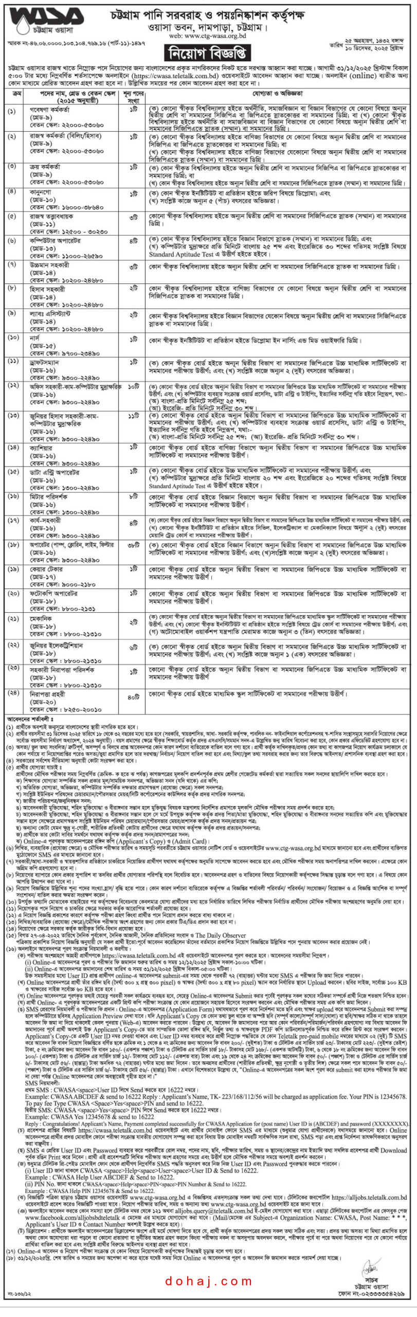 আবেদন প্রক্রিয়া: আগ্রহী প্রার্থীরা অনলাইনে http://cwasa.teletalk.com.bd এই ওয়েবসাইটে গিয়ে আবেদনপত্র পূরণ করতে পারবেন।