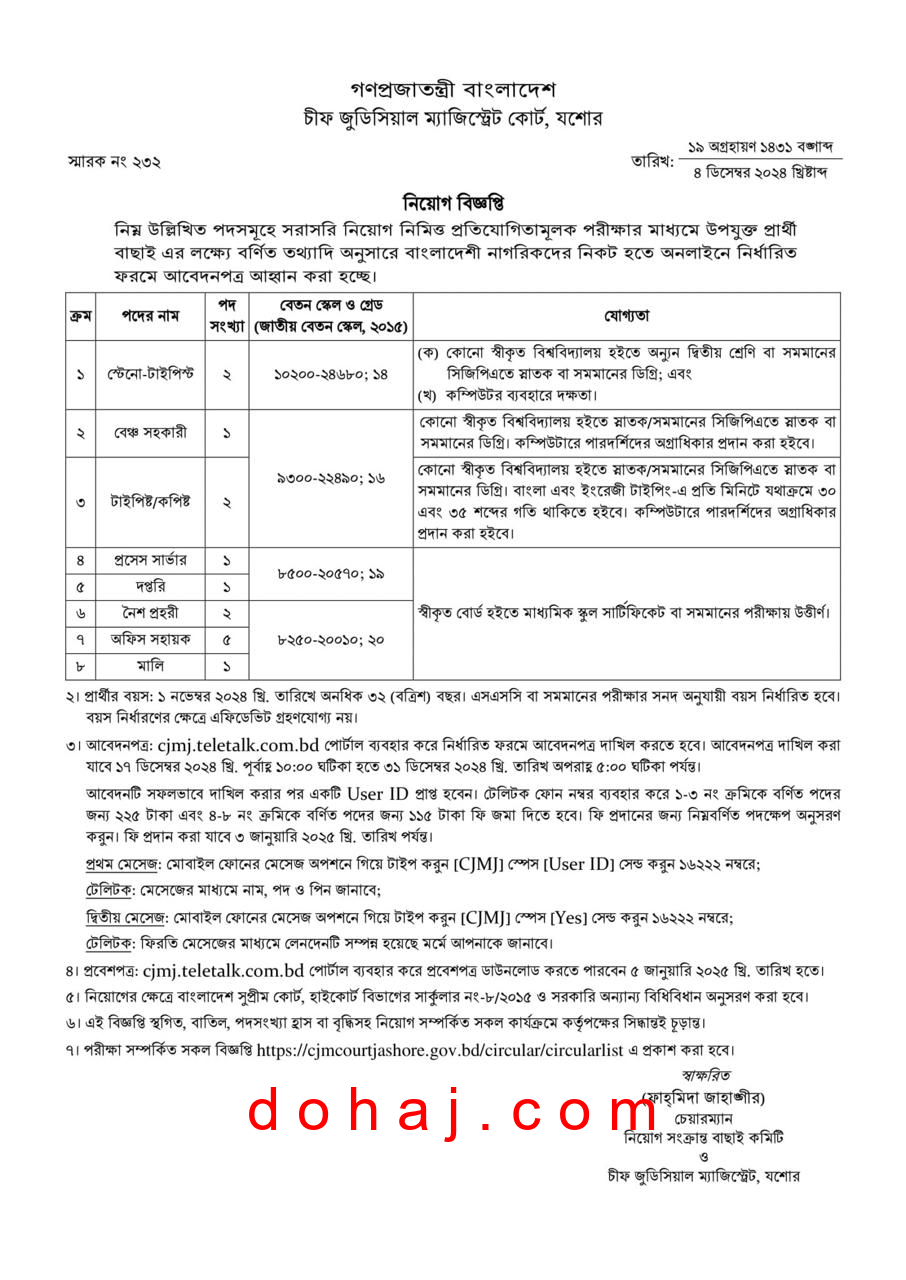 আবেদনের নিয়ম: আগ্রহী প্রার্থীরা অনলাইনে http://cjmj.teletalk.com.bd ওয়েবসাইটের মাধ্যমে আবেদন করতে পারবেন।