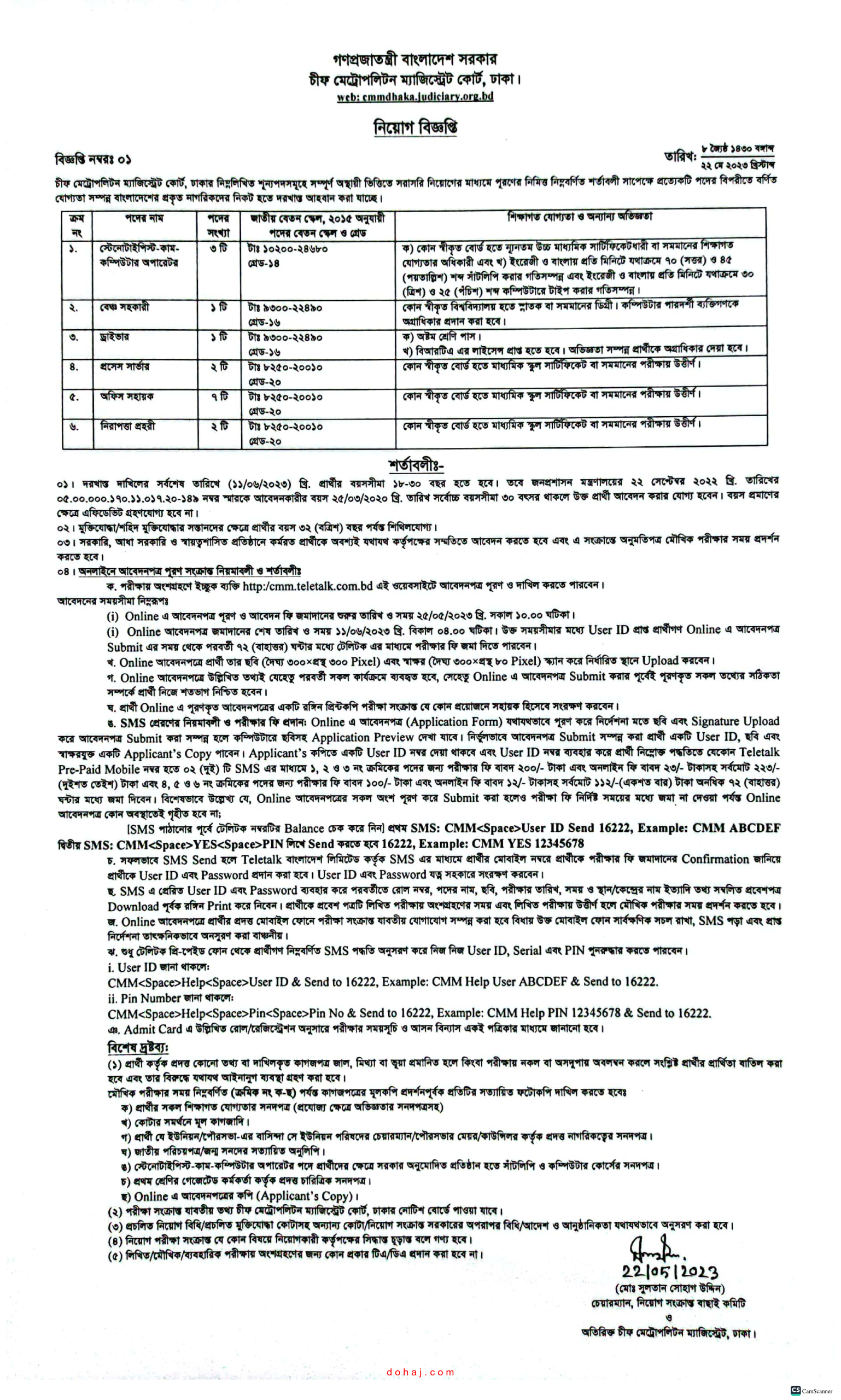 Chief Metropolitan Magistrate Court Dhaka Job Circular: চীফ মেট্রোপলিটন ম্যাজিস্ট্রেট কোর্ট, ঢাকার শূণ্য পদসমূহে জনবল নিয়োগের বিজ্ঞপ্তি প্রকাশিত হয়েছে। চীফ মেট্রোপলিটন ম্যাজিস্ট্রেট কোর্ট ০৬ টি পদে মোট ১৬ জনকে নিয়োগ দেবে। আগ্রহী প্রার্থীরা অনলাইনে আবেদন করতে পারবেন। পদগুলোতে নারী ও পুরুষ উভয়েই আবেদন করতে পারবেন। আগ্রহ ও যোগ্যতা থাকলে আপনিও আবেদন করতে পারেন। সম্পূর্ণ বিজ্ঞপ্তি বিস্তারিত দেওয়া হল।