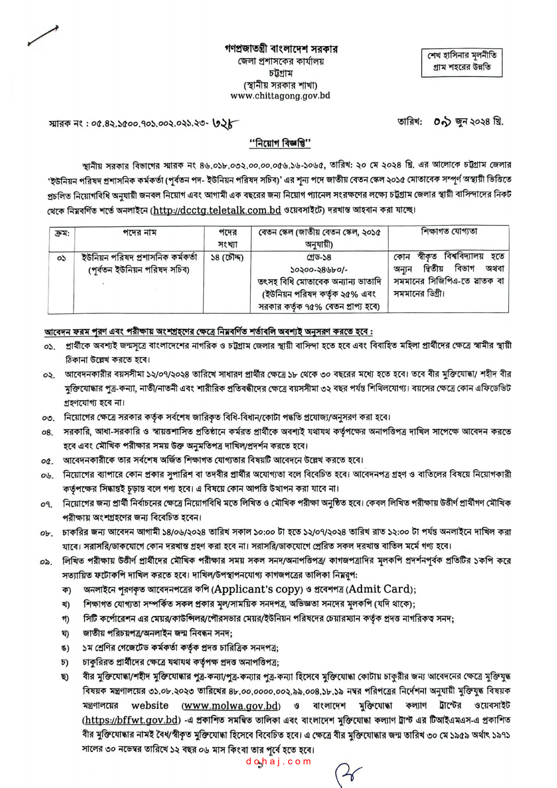 পদের নাম: ইউনিয়ন পরিষদ প্রশাসনিক কর্মকর্তা