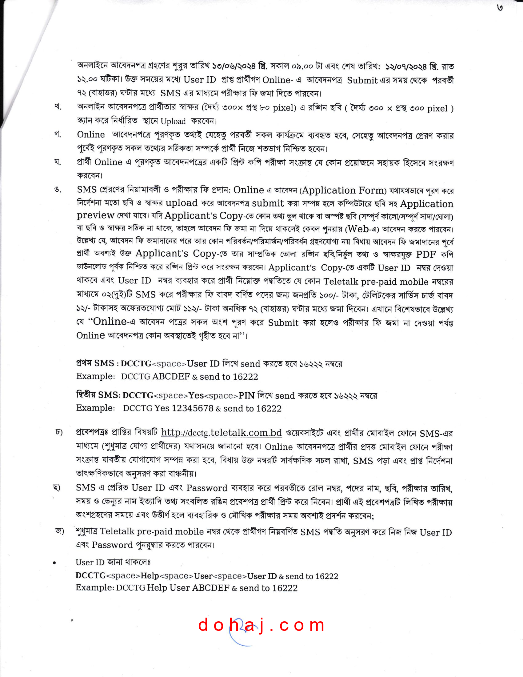 আবেদন প্রক্রিয়া: আবেদন করতে হবে অনলাইনে http://dcctg.teletalk.com.bd ওয়েবসাইটের মাধমে অনলাইনে আবেদনপত্র পাঠাতে হবে।