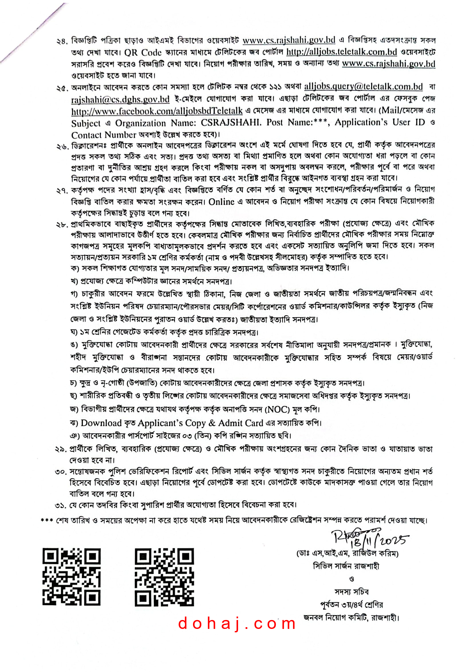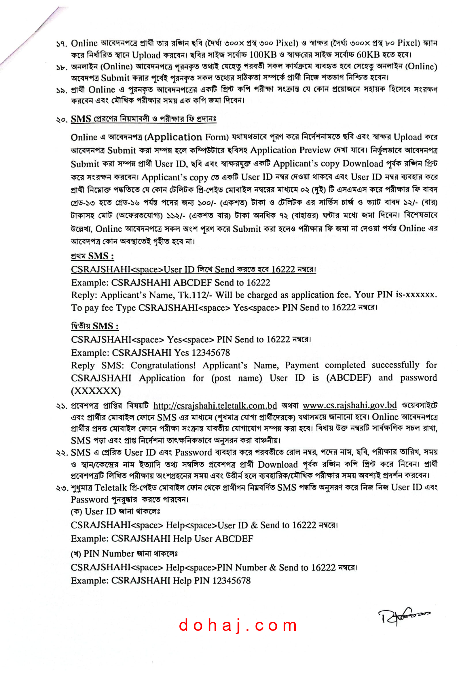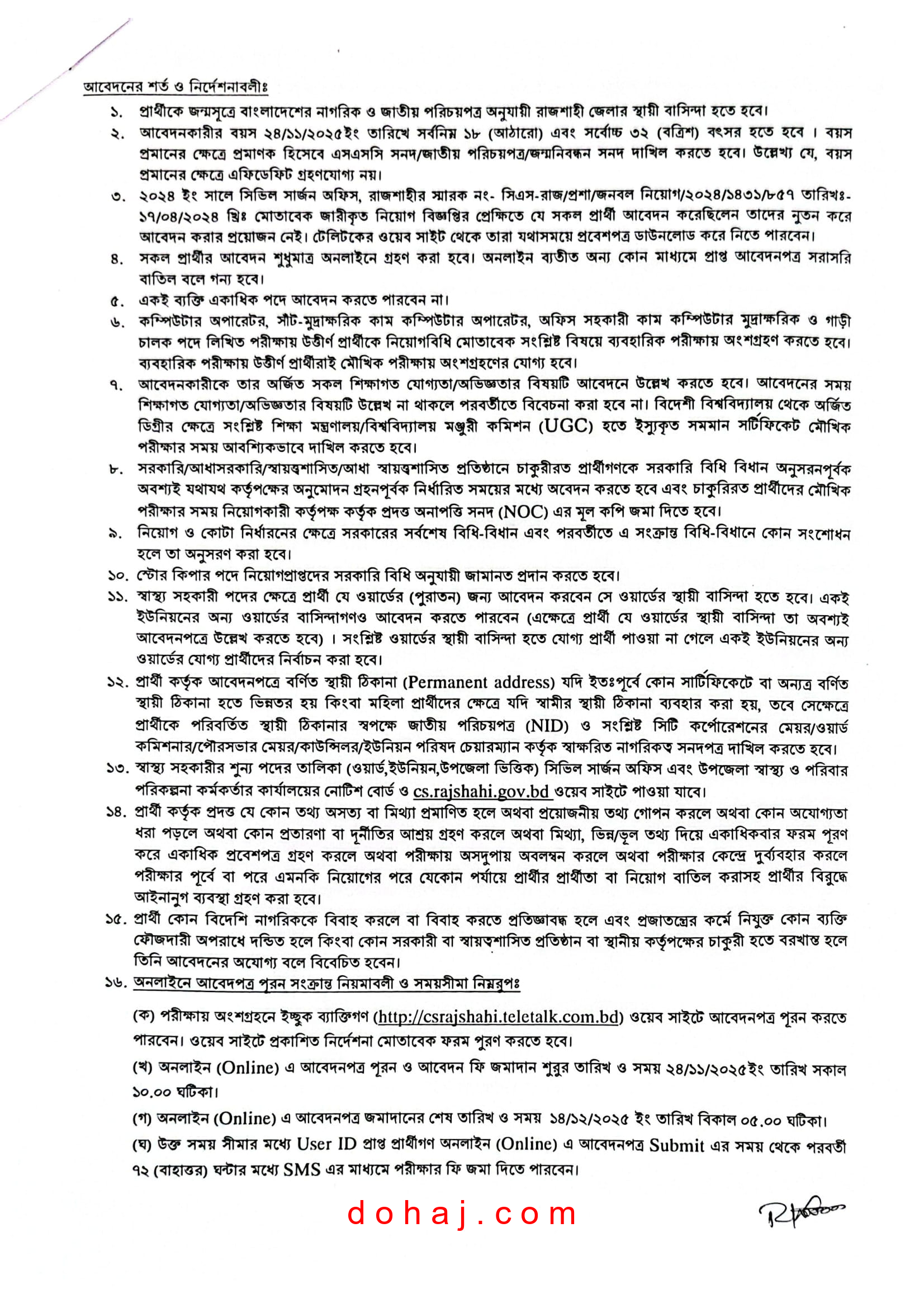 আবেদন প্রক্রিয়া: আবেদন করতে হবে অনলাইনে http://csrajshahi.teletalk.com.bd ওয়েবসাইটের মাধমে অনলাইনে আবেদনপত্র পাঠাতে হবে।