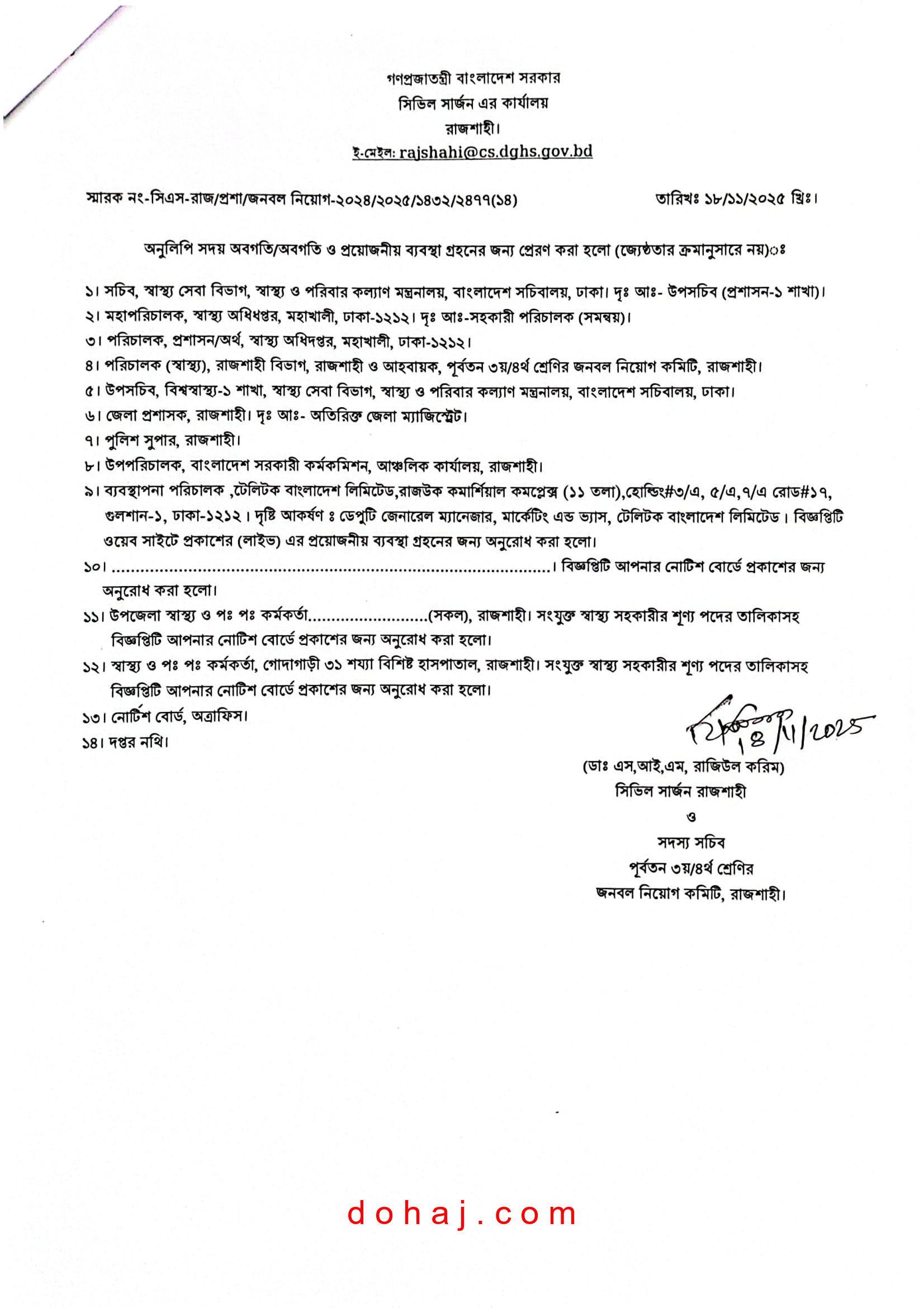 আবেদনের শেষ সময় : ১৪ ডিসেম্বর ২০২৫ তারিখ বিকাল ০৫:০০ টায় শেষ হবে।