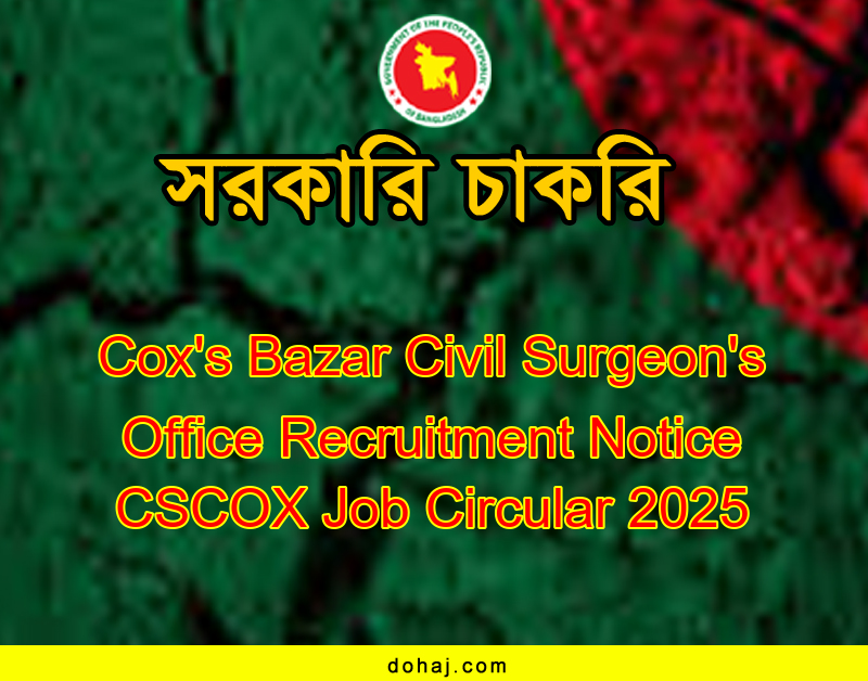 CSCOX Job Circular: সিভিল সার্জন এর কার্যালয়, কক্সবাজার এর শূন্য পদসমূহে জনবল নিয়োগের বিজ্ঞপ্তি প্রকাশ হয়েছে। কক্সবাজার সিভিল সার্জন এর কার্যালয়ে ০৭ টি পদে মোট ১৬৯ জনকে নিয়োগ দেয়া হবে। উক্ত পদ গুলোতে নারী-পুরুষ উভয়ই আবেদন করতে পারবেন। আগ্রহ ও যোগ্যতা থাকলে আপনিও আবেদন করতে পারেন। আগ্রহী প্রার্থীরা অনলাইনে আবেদন করতে পারবেন। সম্পূর্ণ বিজ্ঞপ্তি বিস্তারিত দেওয়া হল।