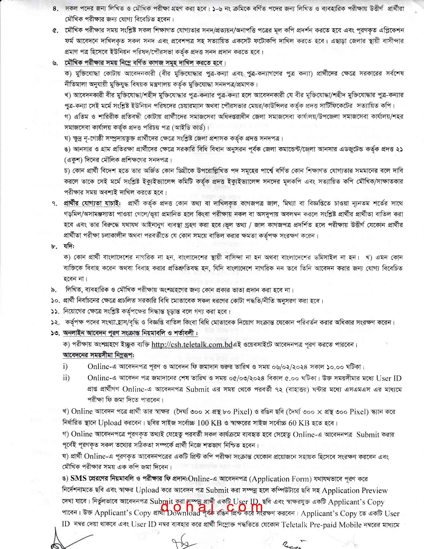 আবেদনের শেষ সময়: ০৫ মার্চ ২০২৪ তারিখ বিকাল ০৫:০০ টা পর্যন্ত আবেদন করা যাবে।