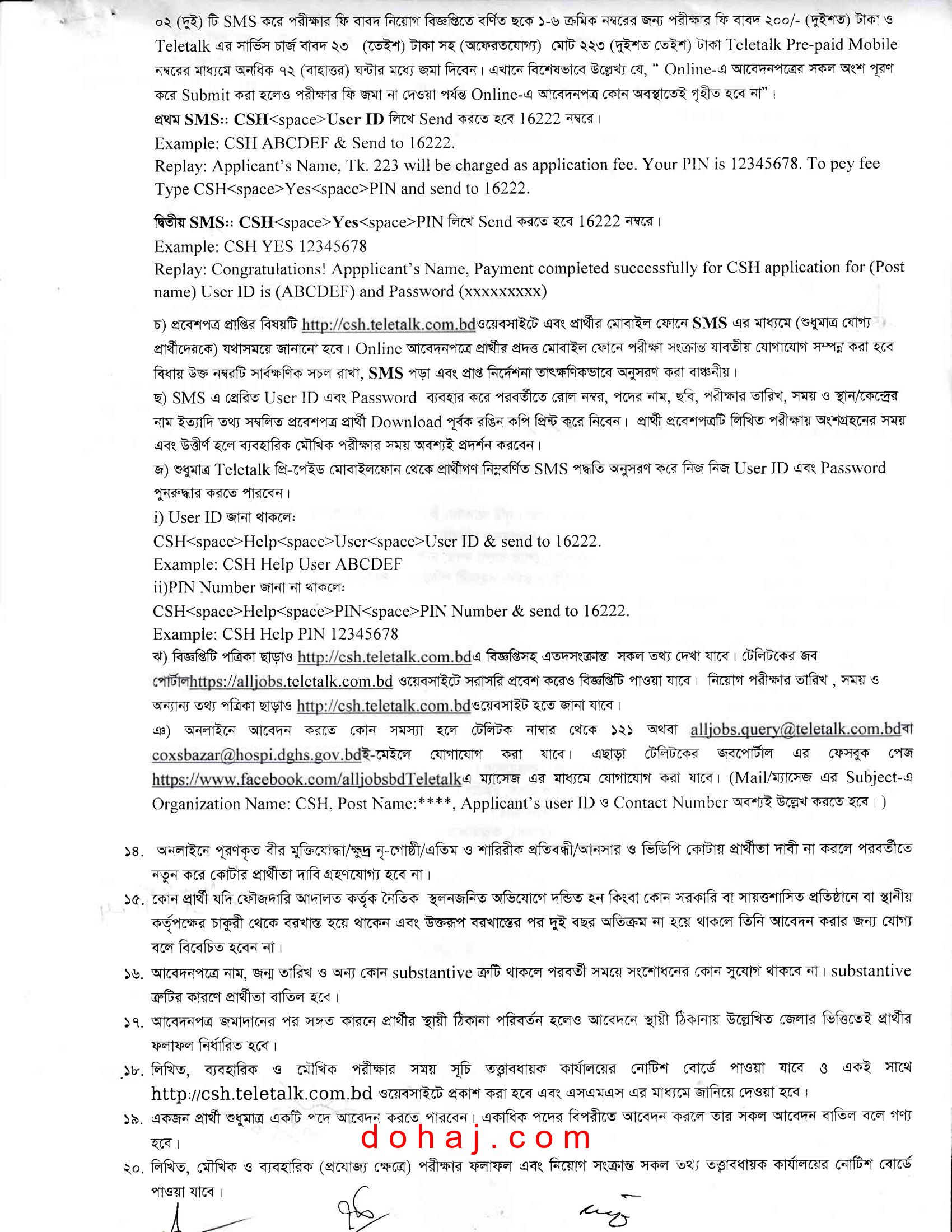 আবেদন প্রক্রিয়া: আগ্রহী প্রার্থীরা অনলাইনে http://csh.teletalk.com.bd এই ওয়েবসাইটে গিয়ে আবেদনপত্র পূরণ করতে পারবেন।