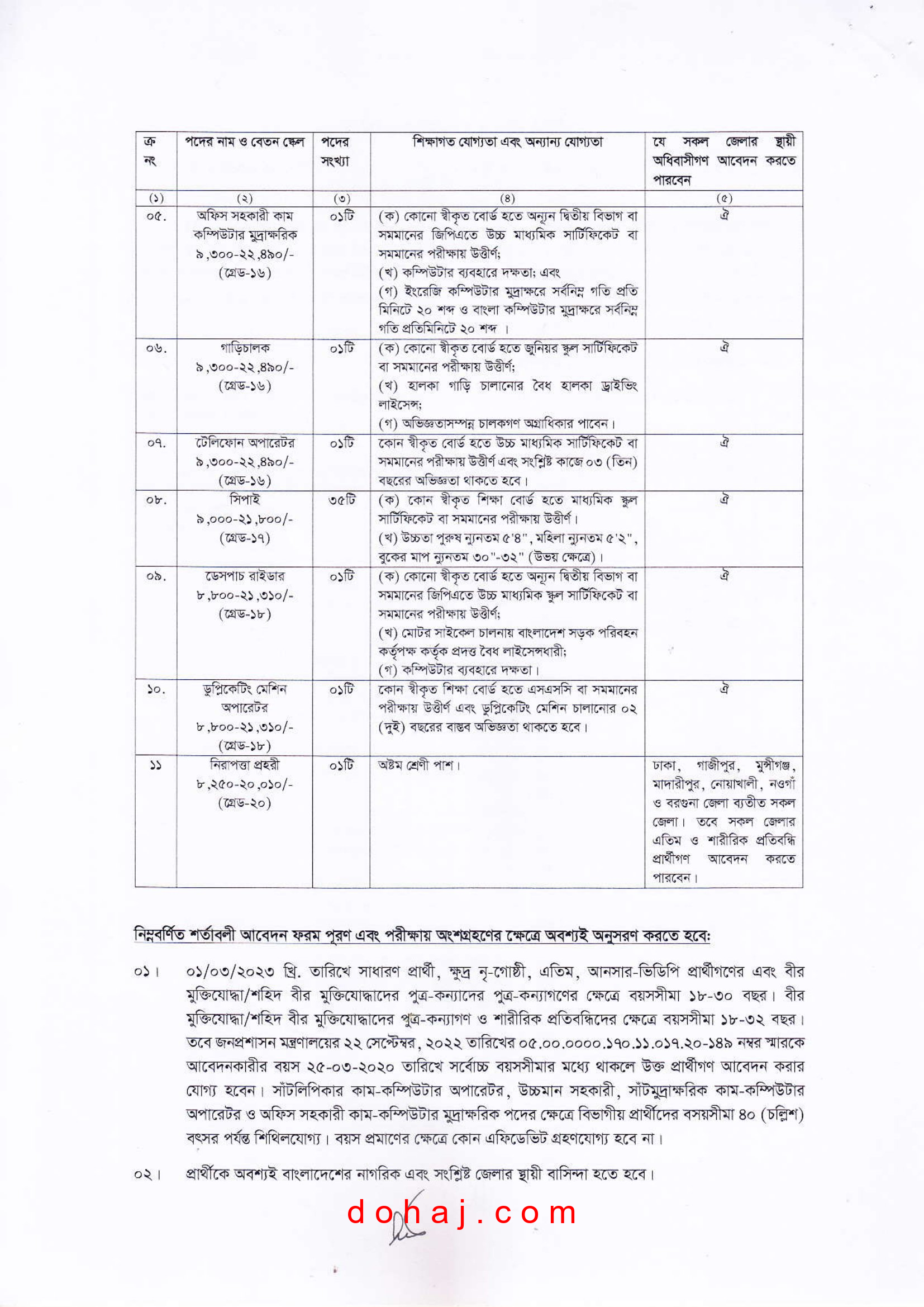 শিক্ষাগত যোগ্যতা: জেএসসি বা সমমান পাশ।