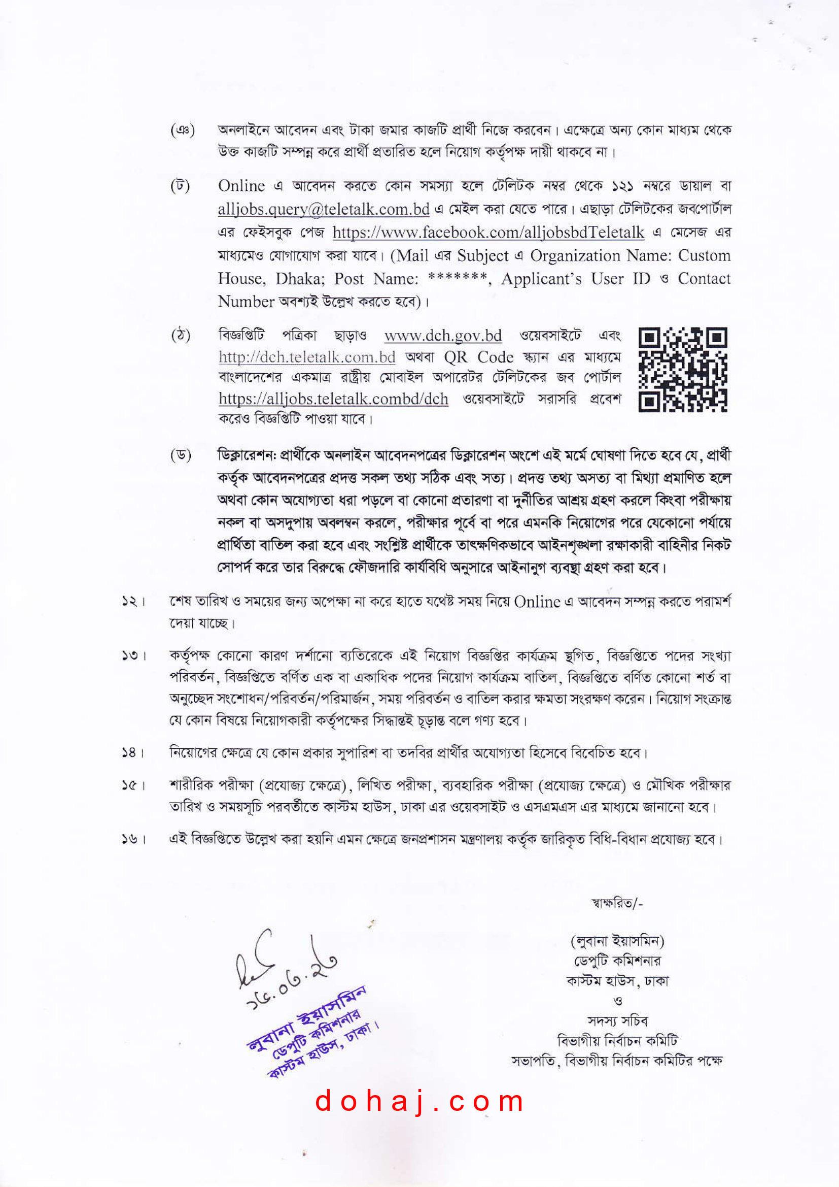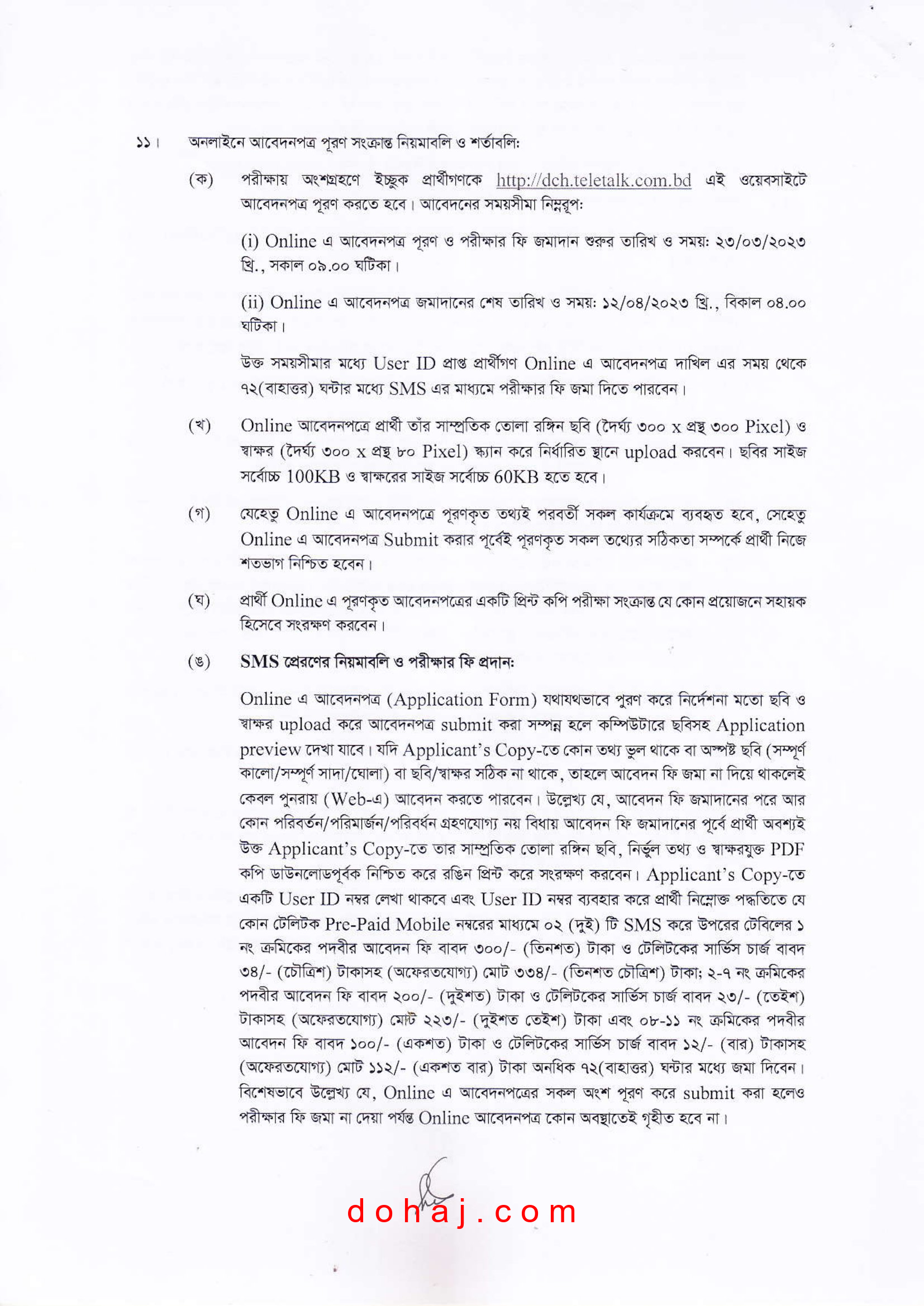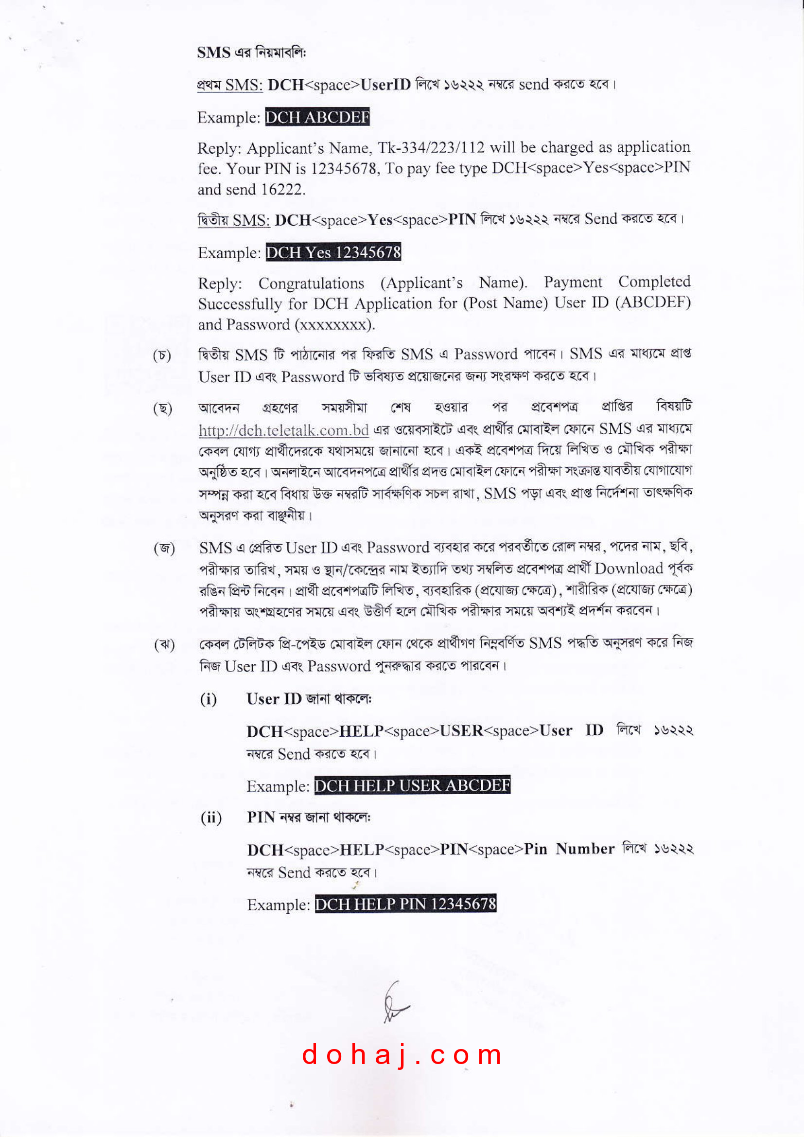 আবেদন প্রক্রিয়া: আবেদন করতে হবে অনলাইনে http://dch.teletalk.com.bd ওয়েবসাইটের মাধমে অনলাইনে আবেদনপত্র পাঠাতে হবে।
