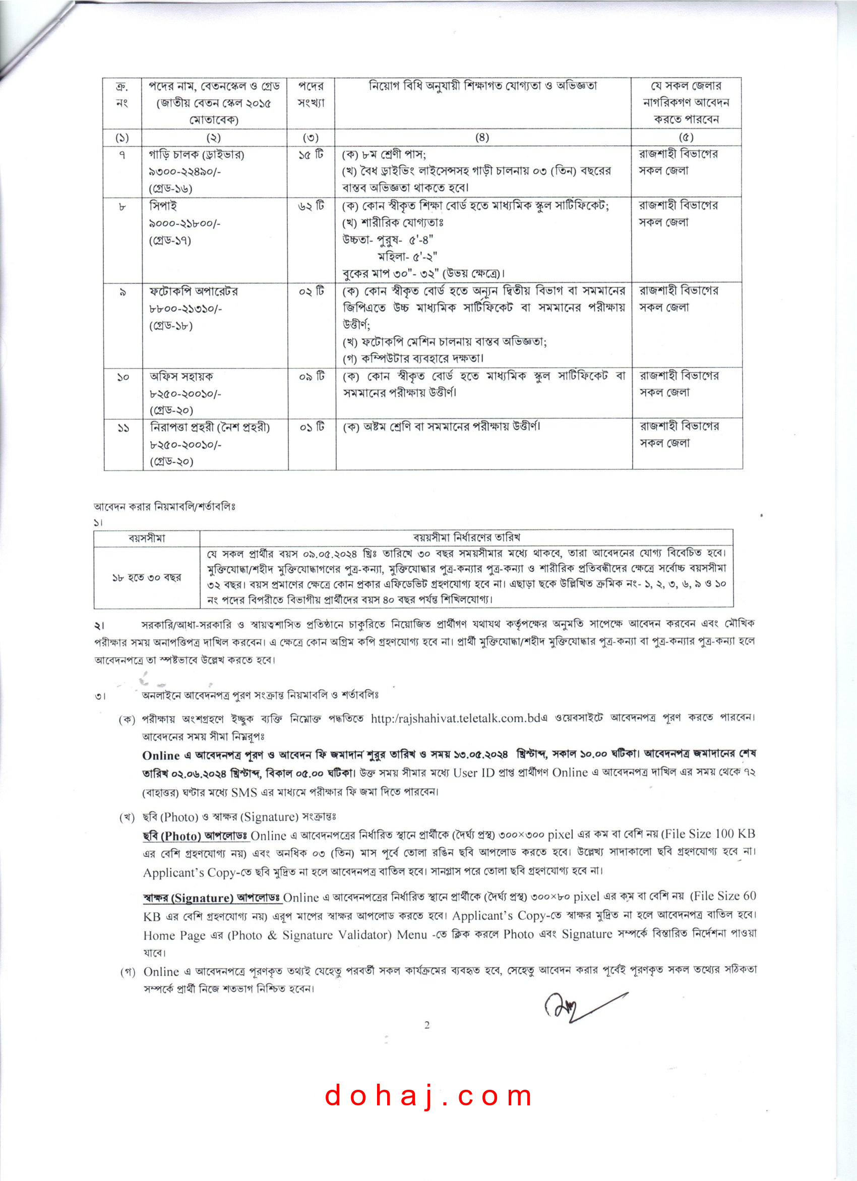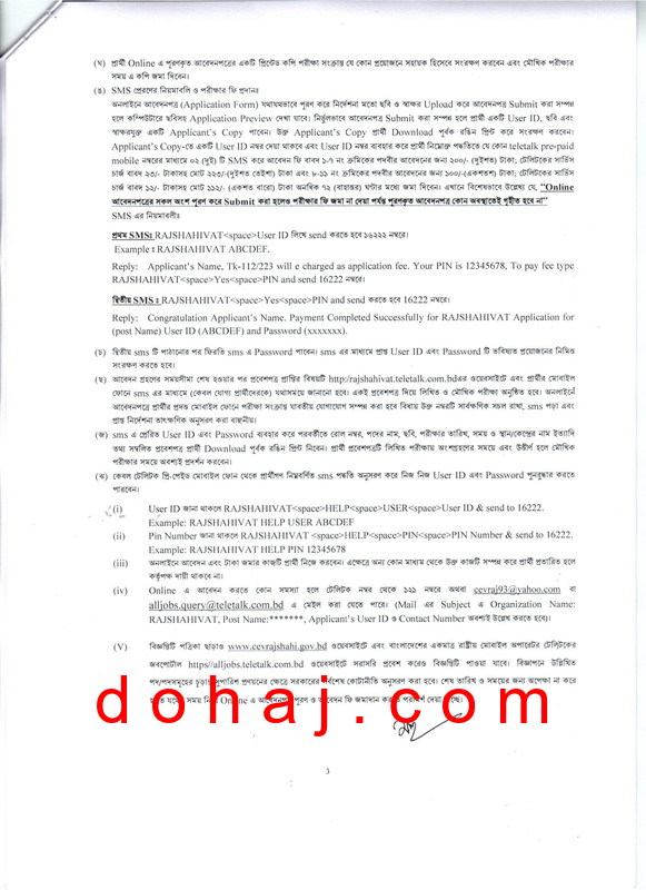 আবেদন প্রক্রিয়া: আগ্রহী প্রার্থীরা অনলাইনে http://rajshahivat.teletalk.com.bd এই ওয়েবসাইটে গিয়ে আবেদনপত্র পূরণ করতে পারবেন।