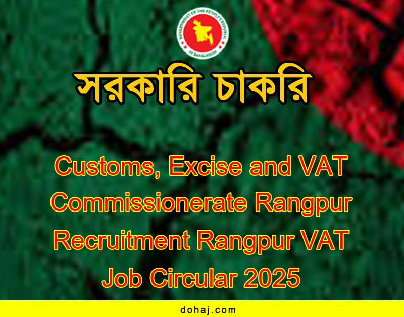 Rangpur VAT Job Circular: কাস্টমস, এক্সাইজ ও ভ্যাট কমিশনারেট, রংপুর এর শূন্য পদসমূহে জনবল নিয়োগ দেয়া হবে। কাস্টমস, এক্সাইজ ও ভ্যাট কমিশনারেট, রংপুর ১১ টি পদে মোট ৭৬ জনকে নিয়োগ দেবে। উক্ত পদে নারী-পুরুষ উভয়ই আবেদন করতে পারবেন। আগ্রহী প্রার্থীরা অনলাইনে আবেদন করতে পারবেন। আগ্রহ ও যোগ্যতা থাকলে আপনিও আবেদন করতে পারেন। আবেদন প্রক্রিয়াসহ সম্পূর্ণ বিজ্ঞপ্তি বিস্তারিত দেওয়া হল।
