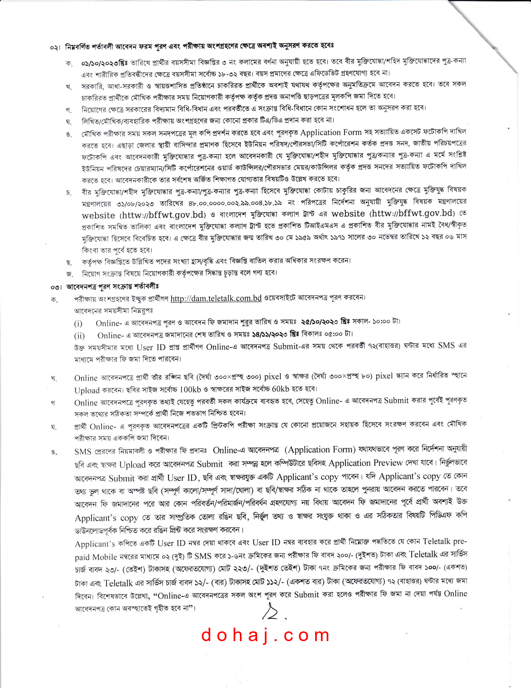 আবেদনের শেষ সময়: ১৪ নভেম্বর ২০২৩ তারিখ বিকাল ০৫:০০ টা পর্যন্ত আবেদন করা যাবে।