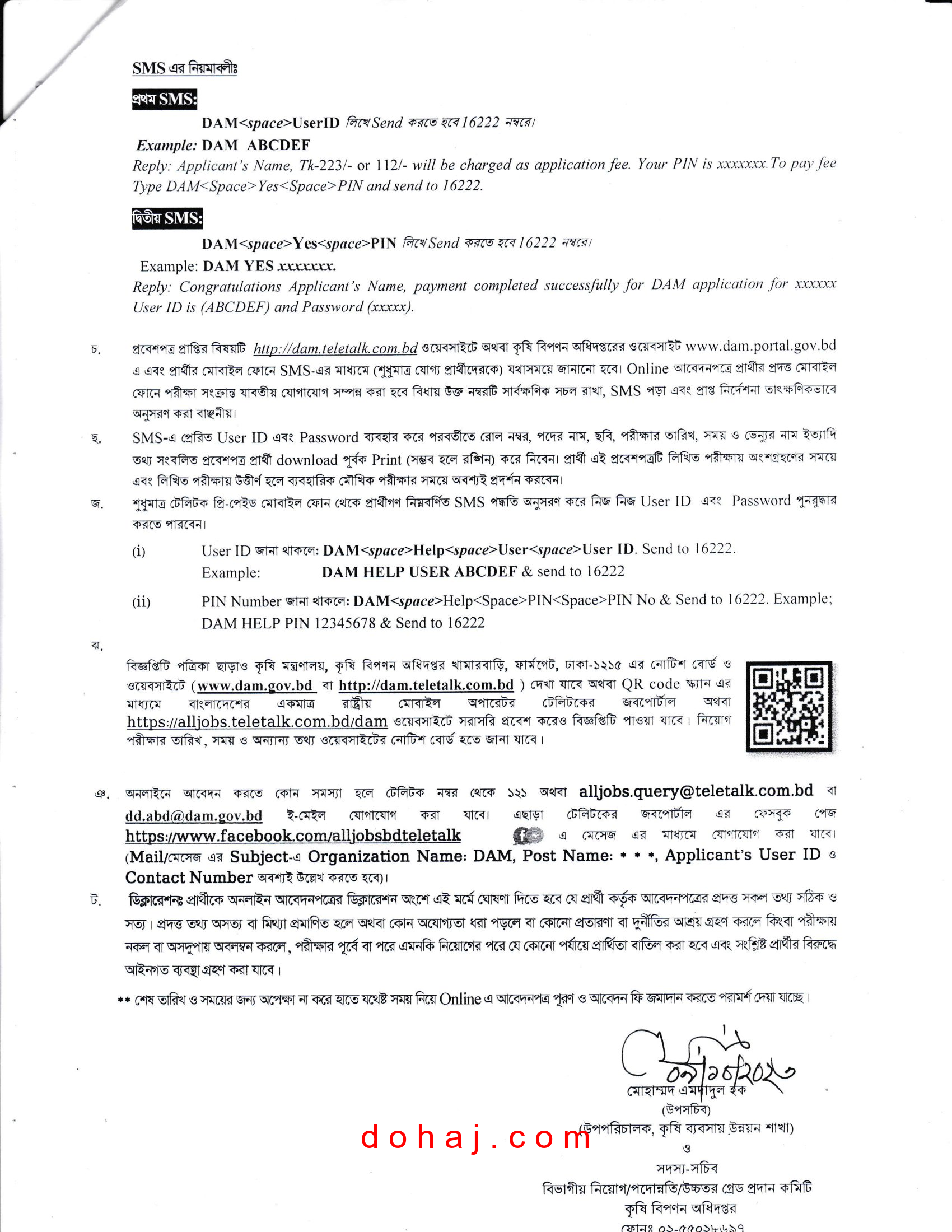 আবেদনের নিয়ম: আগ্রহী প্রার্থীরা অনলাইনে http://dam.teletalk.com.bd ওয়েবসাইটের মাধ্যমে আবেদন করতে পারবেন।