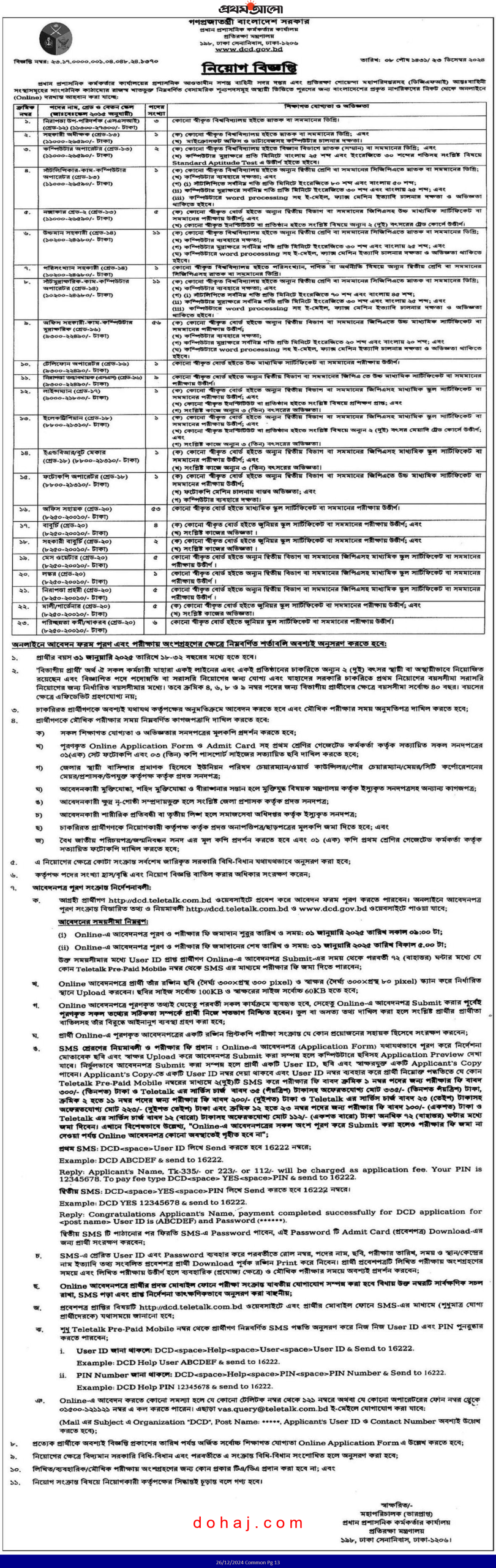 আবেদনের নিয়ম: আগ্রহী প্রার্থীরা অনলাইনে http://dcd.teletalk.com.bd ওয়েবসাইটের মাধ্যমে আবেদন করতে পারবেন।