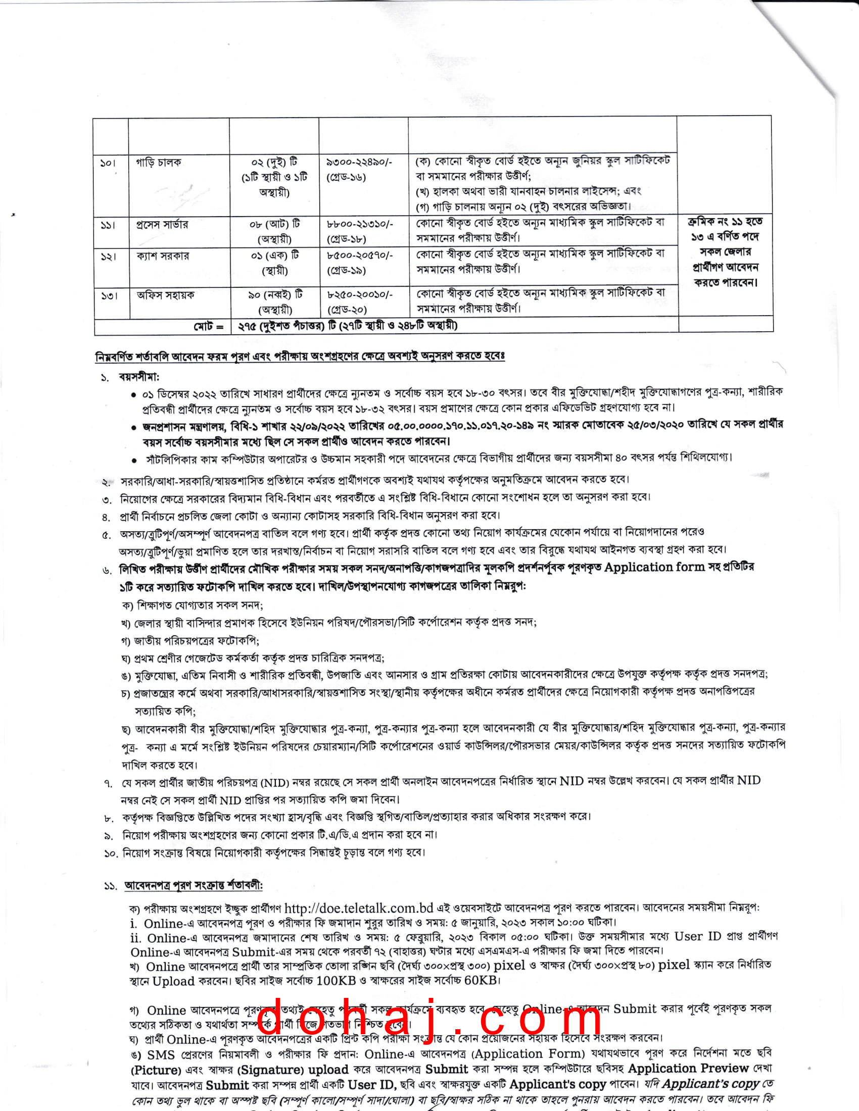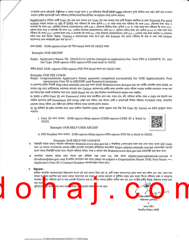 আবেদন প্রক্রিয়া: আগ্রহী প্রার্থীরা অনলাইনে http://doe.teletalk.com.bd এই ওয়েবসাইটে গিয়ে আবেদনপত্র পূরণ করতে পারবেন।